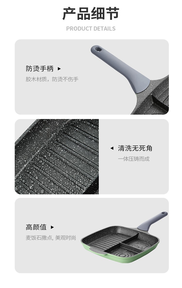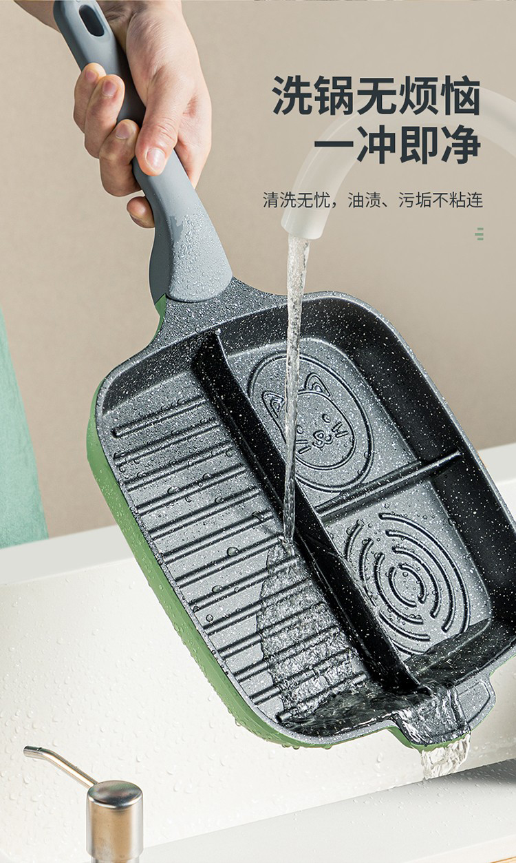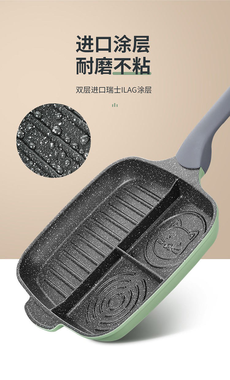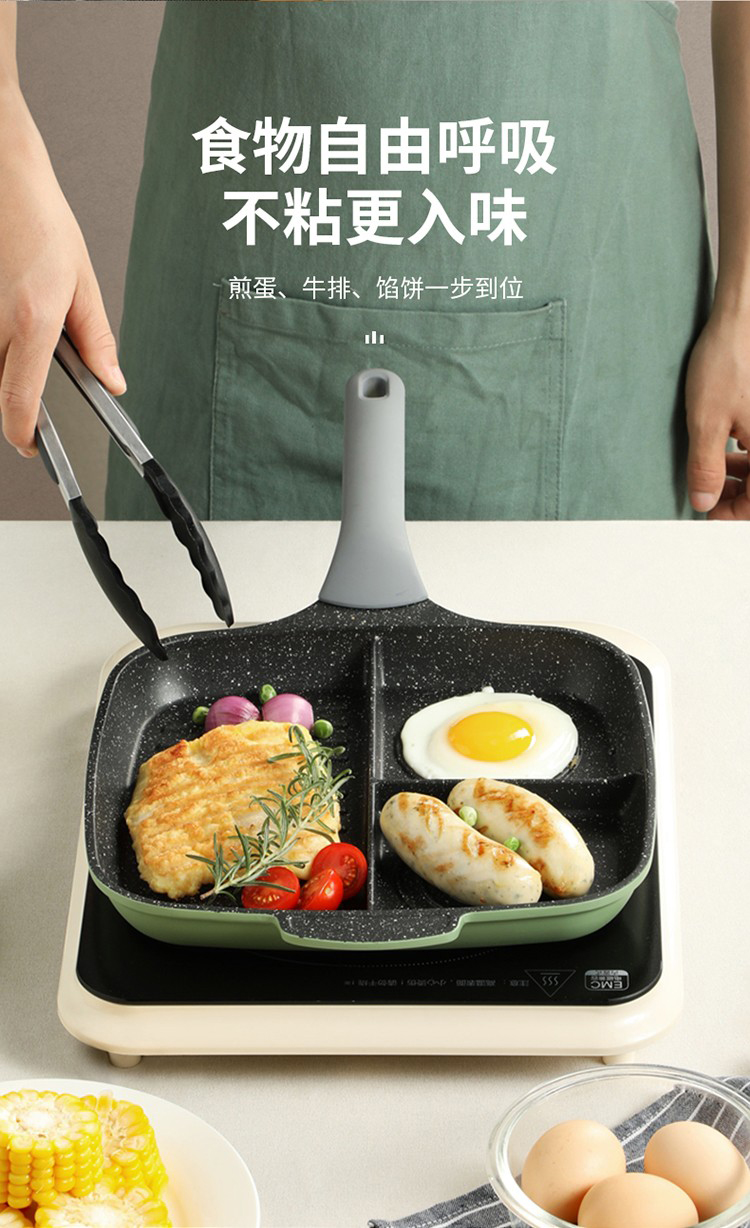 1、日本进口不粘层,匀热控油,科学少油烟,轻烟少油更健康