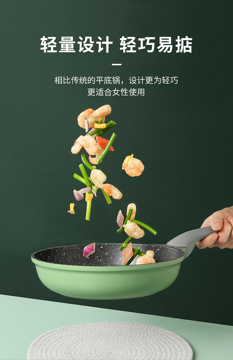 煎烙少油烟 拒绝厨房油烟带来的危害3、锅内无铆钉,污渍无处藏;