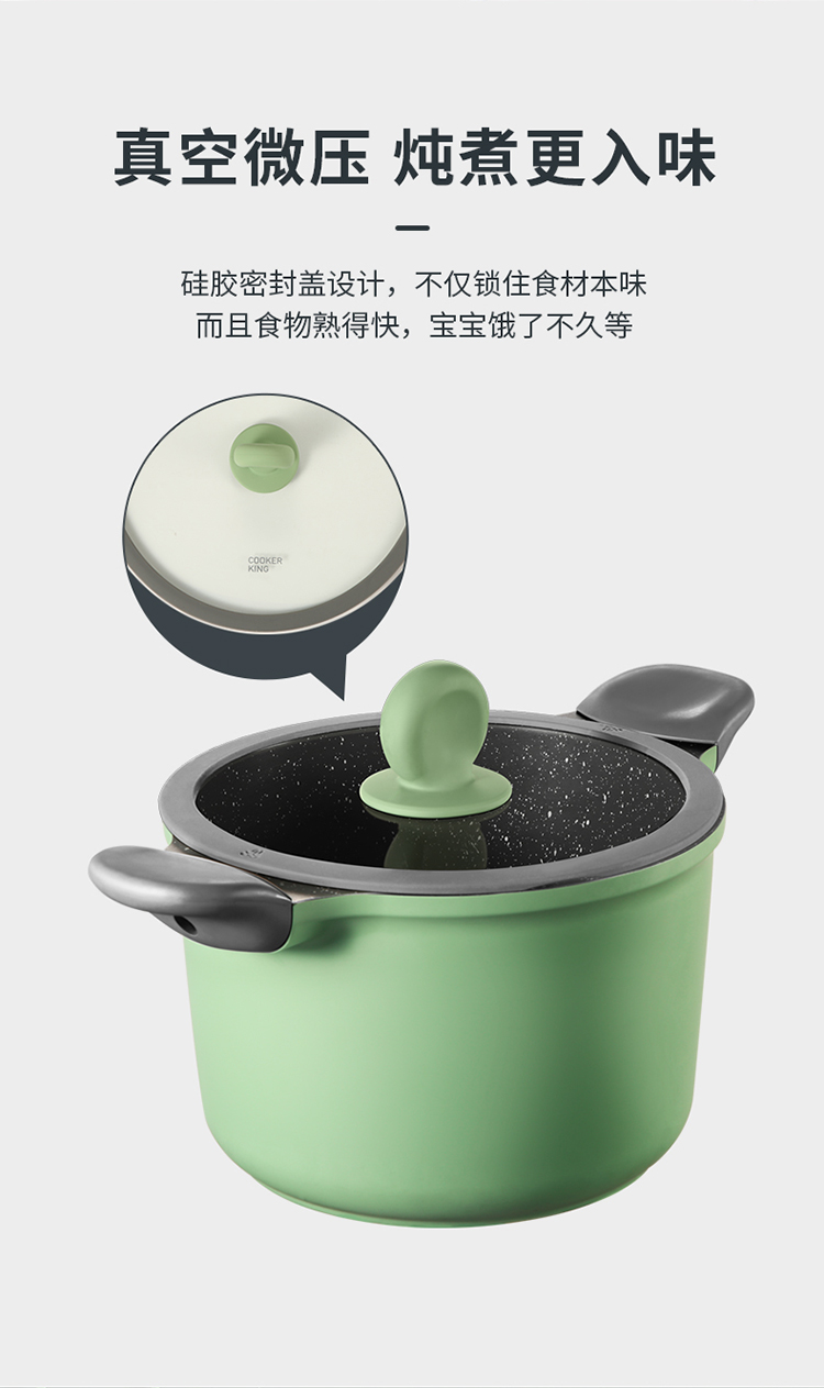 硅胶密封盖设计,不仅锁住食材本味而且食物熟得快,宝宝饿了不久等