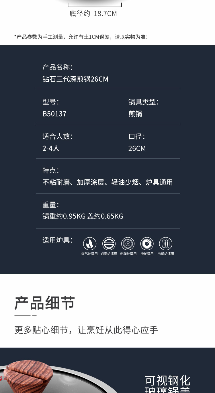 炊大皇钻石三代深煎锅B50137