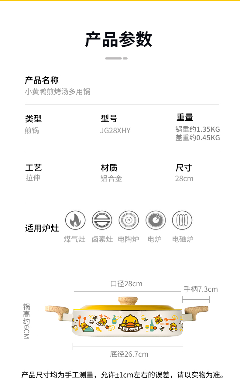 炊大皇B.Duck小黄鸭煎烤锅28cm JG28XHY