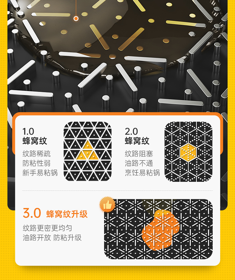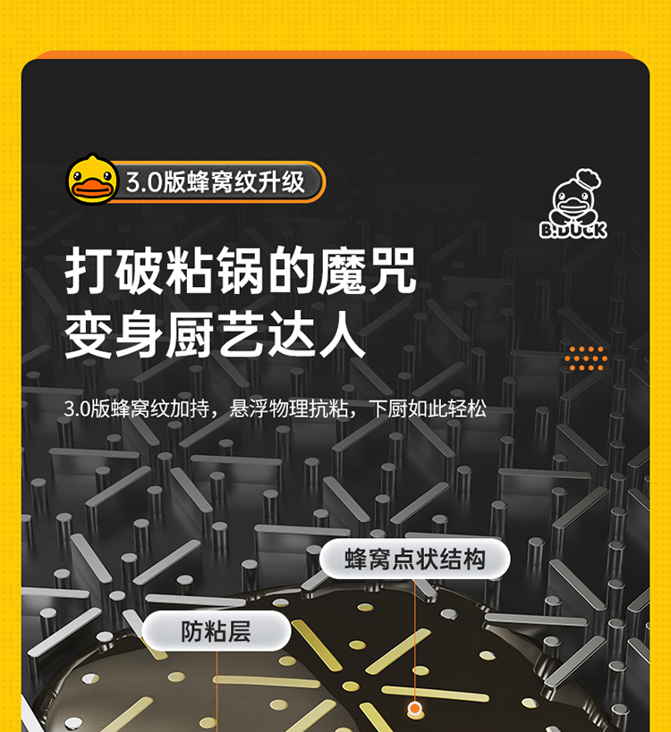 3.0版蜂窝纹加持,悬浮物理抗粘,下厨如此轻松