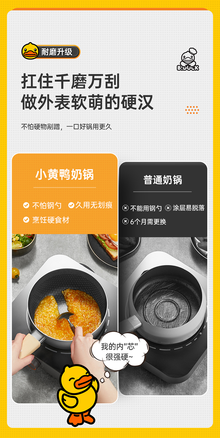 2、扛住千磨万刮做外表软萌的硬汉;不怕硬物剐蹭,一口好锅用更久