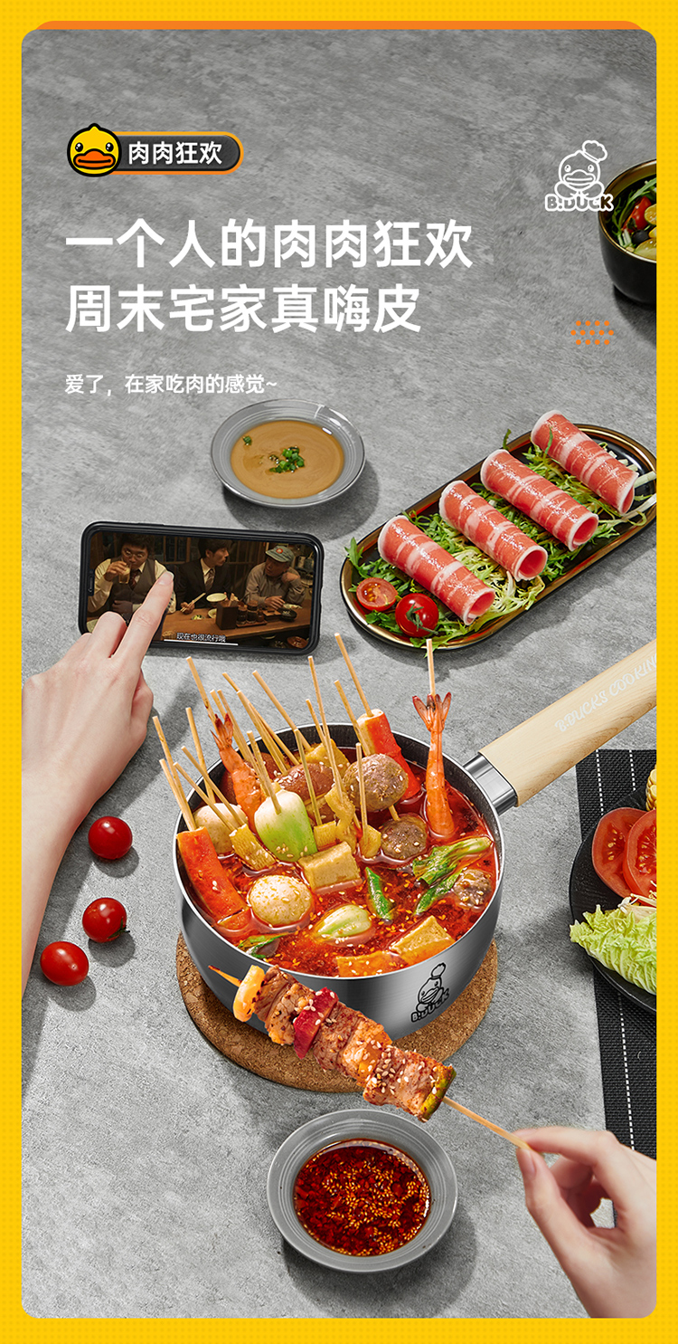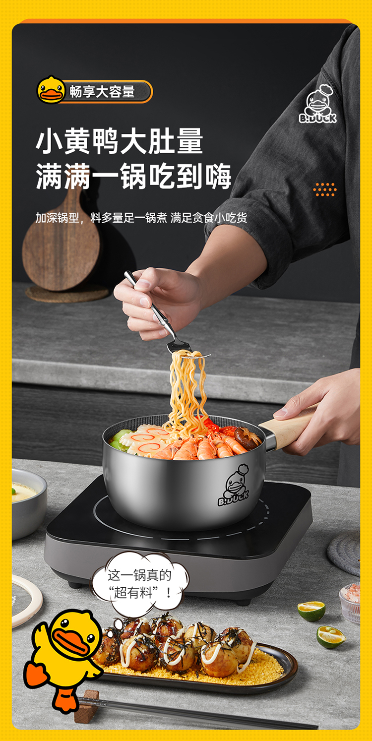 4、小黄鸭大肚量满满一锅吃到嗨,加深锅型,料多量足一锅煮 满足贪食小吃货