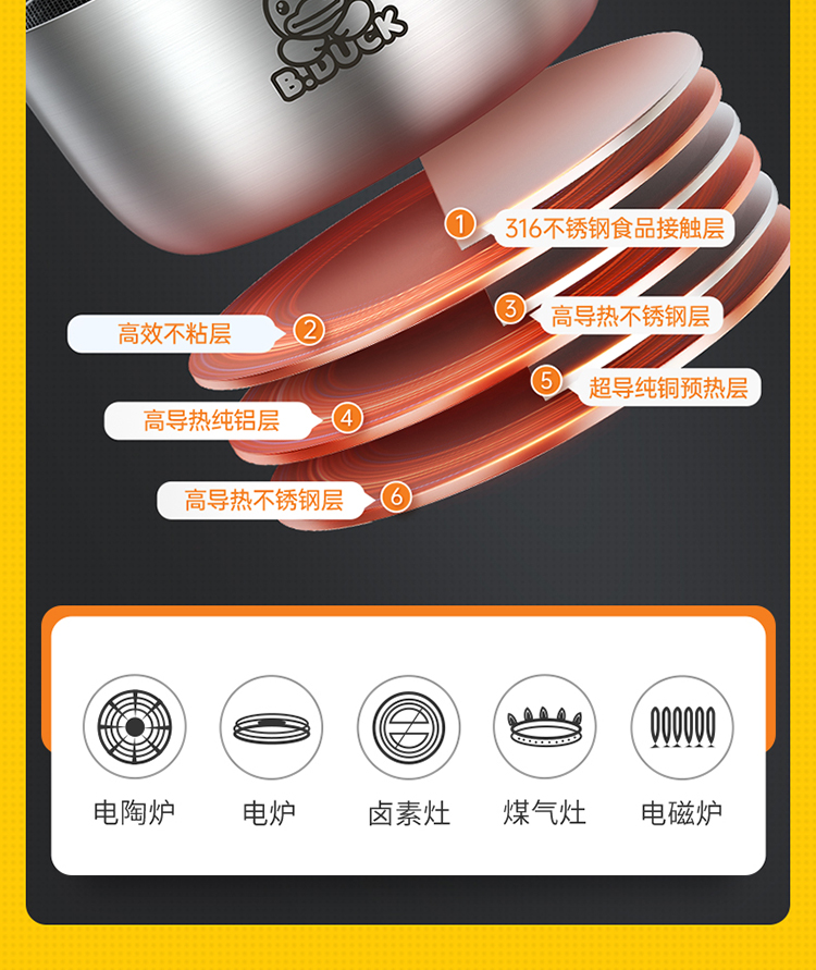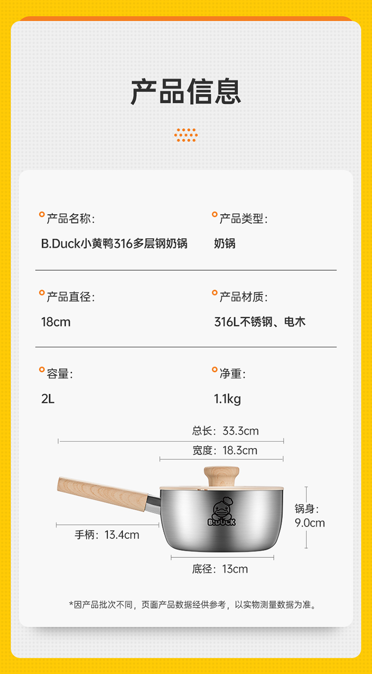 炊大皇小黄鸭316多层钢奶锅18cmNG18XHYG