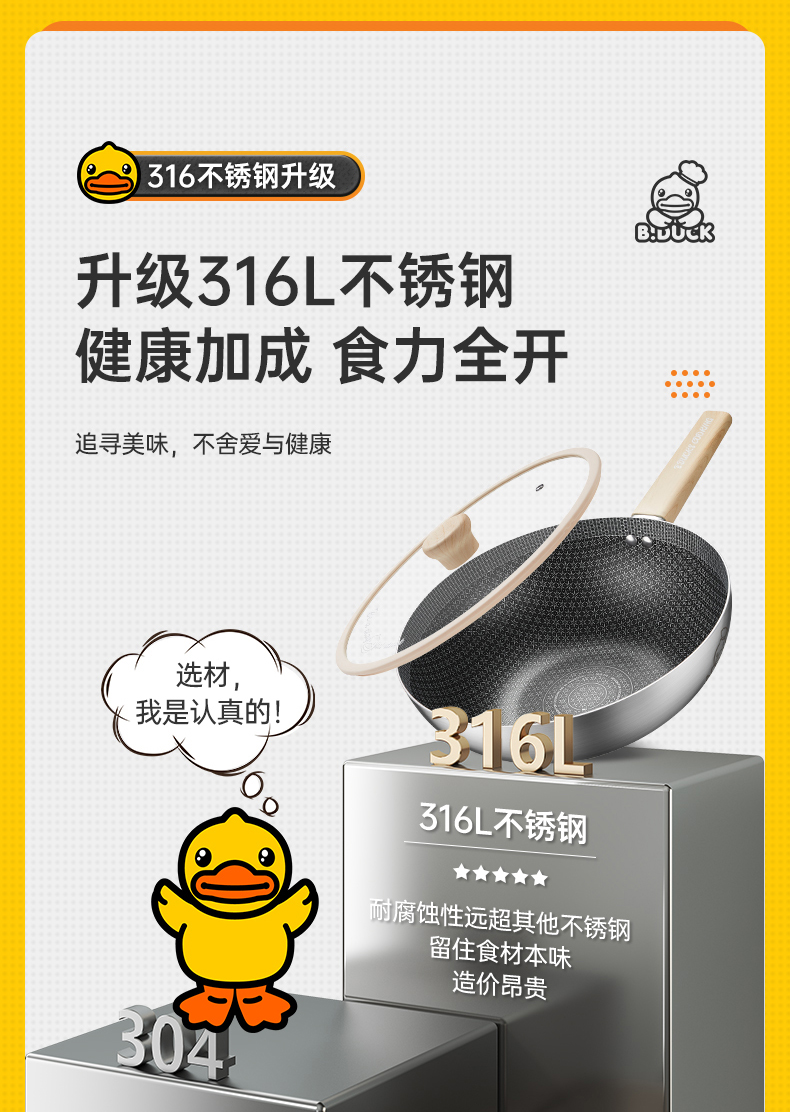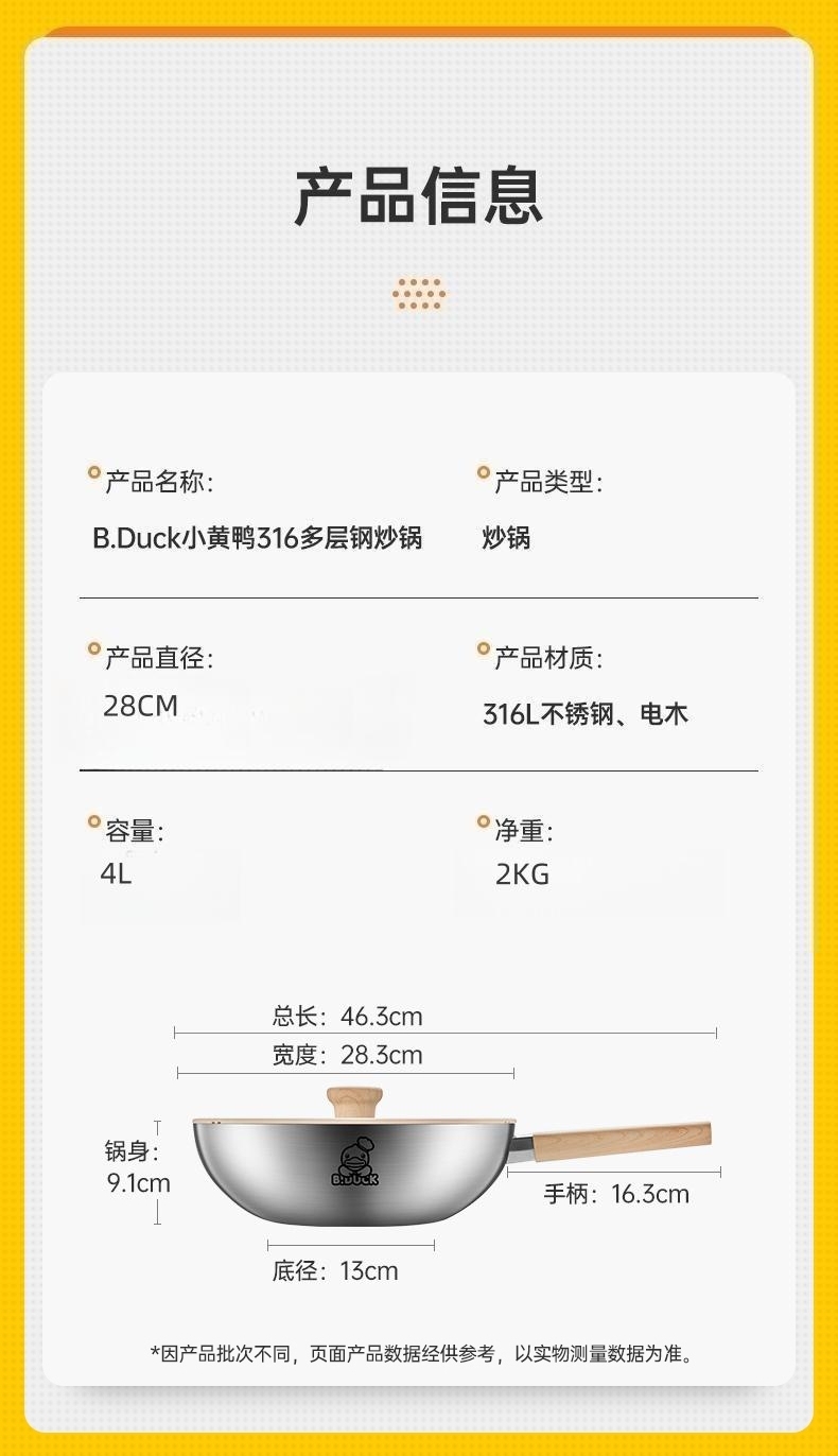 炊大皇小黄鸭316多层钢炒锅28cmCG28XHYG