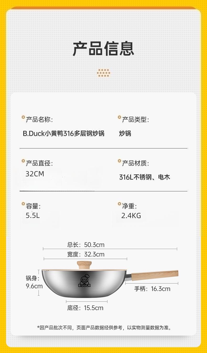 炊大皇小黄鸭316多层钢炒锅32cmG32XHYG