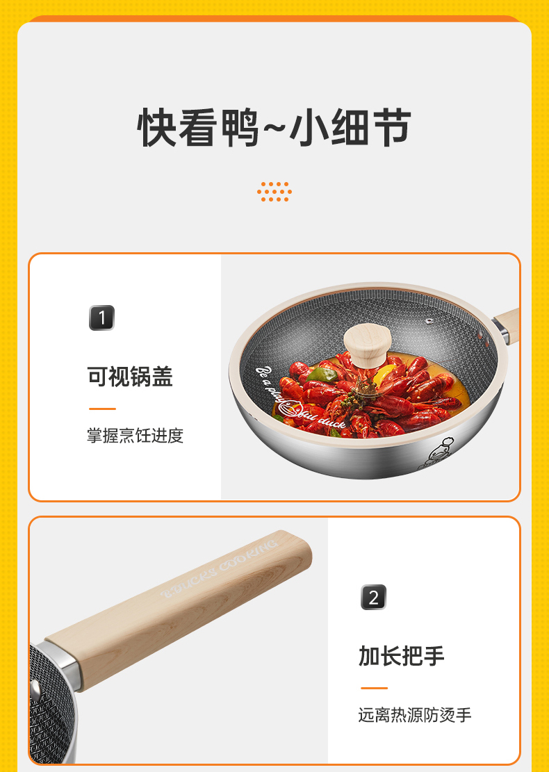 2.打破粘锅的魔咒变身厨艺达人,3.0版蜂窝纹加持,悬浮物理抗粘,下厨如此轻松。