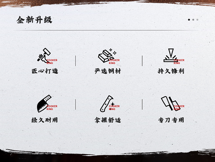 1、手工匠心锻打,坚韧锋利,助力厨房切配,锻打后的钢材韧性更好,硬度更佳。