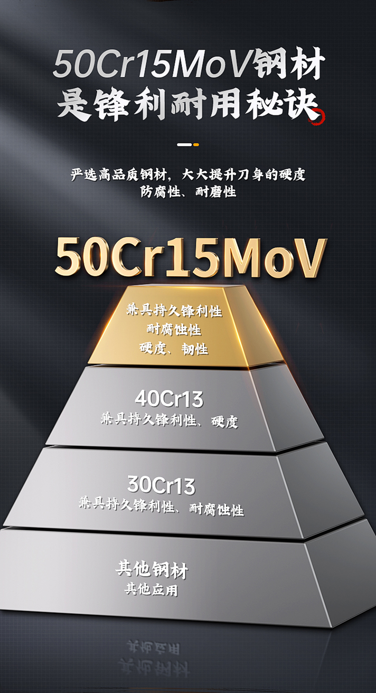 2、严选高品质钢材,大大提升刀身的硬度防腐性、耐磨性,多道工序精磨,习口锋利耐用,切割更顺畅。