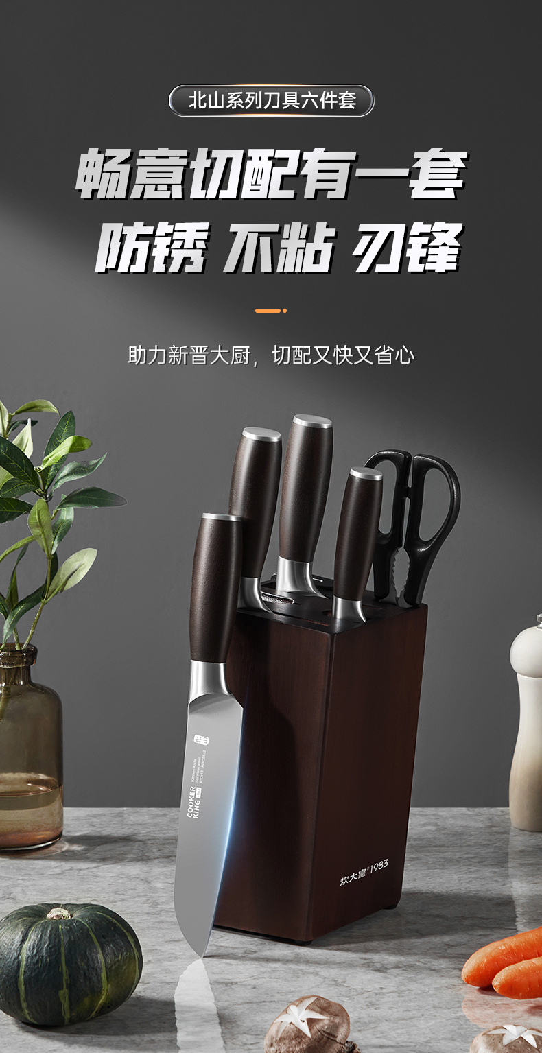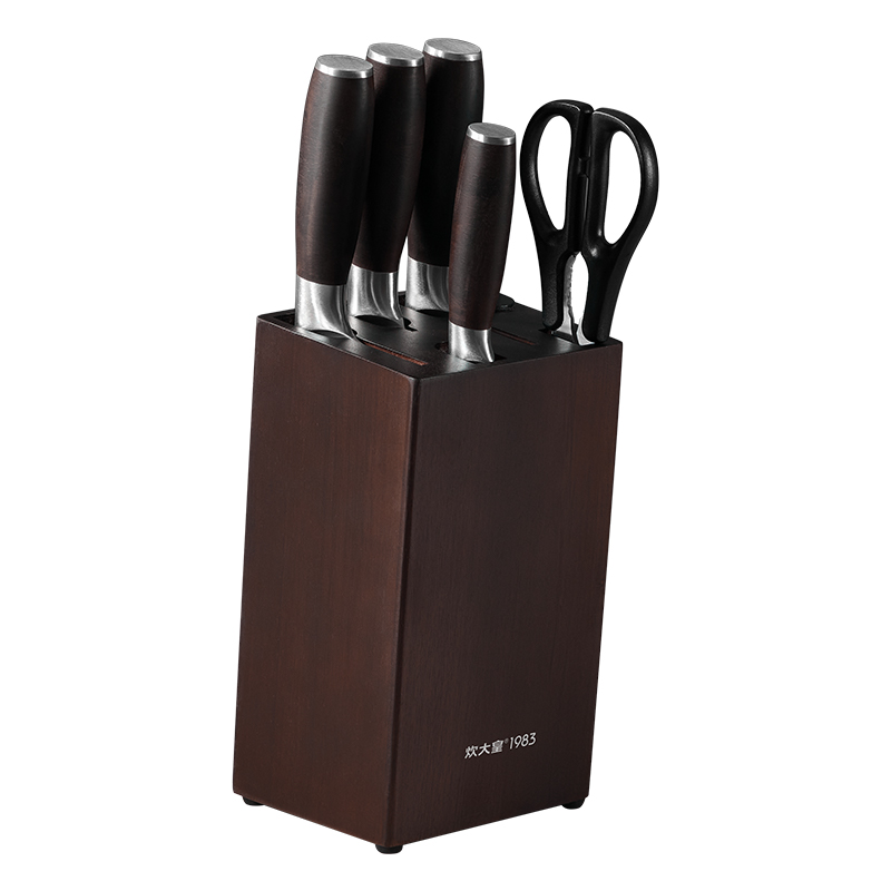 规格:砍骨刀:170*120*84mm/切片刀180*120*84mm/小厨刀:170*120*45mm/水果刀:115*105*30mm/剪刀:71*134*77mm/刀座:225*115*124mm