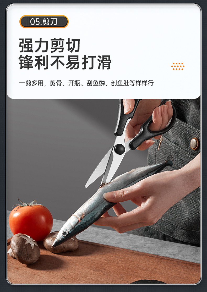 3、锋利不易钝源于40Cr13好钢材,手工湿式水磨开刃,刃口锋利升级让切配比你想象的更畅快。