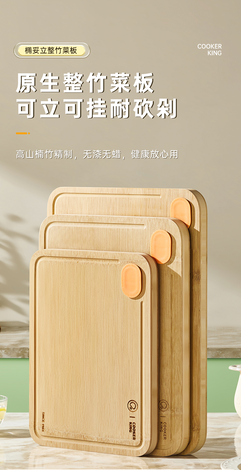1、高山楠竹精制,无漆无蜡,健康放心用,天然楠竹整张展开制作无拼接,每块菜板皆为匠心之作。