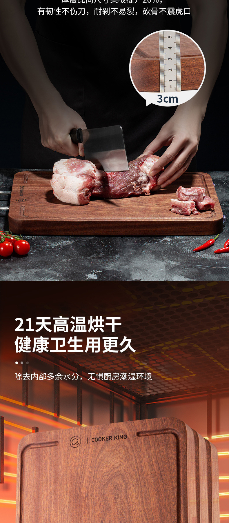厚度比同尺寸菜板提升20%,有韧性不伤刀,耐剁不易裂,砍骨不震虎口