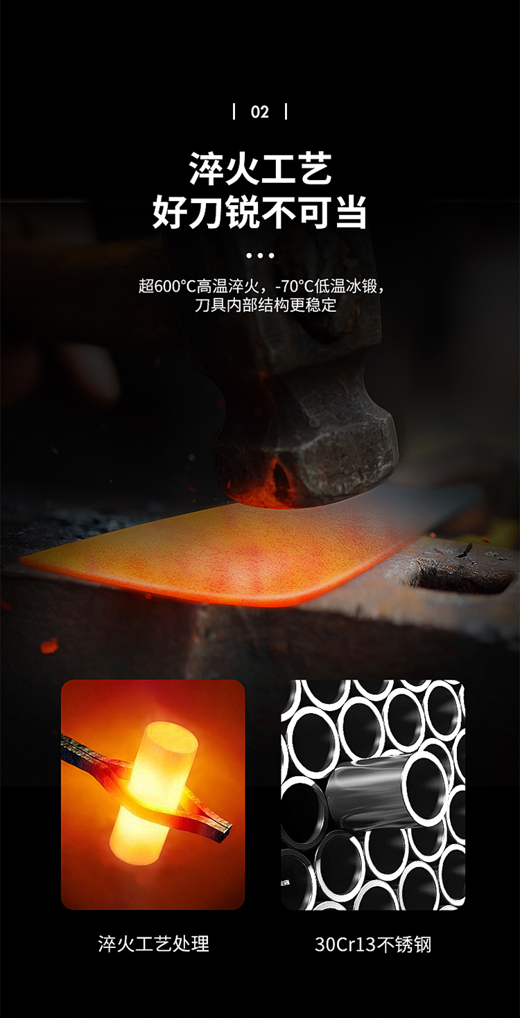 3、超600°C高温淬火,-70°C低温冰锻刀具内部结构更稳定