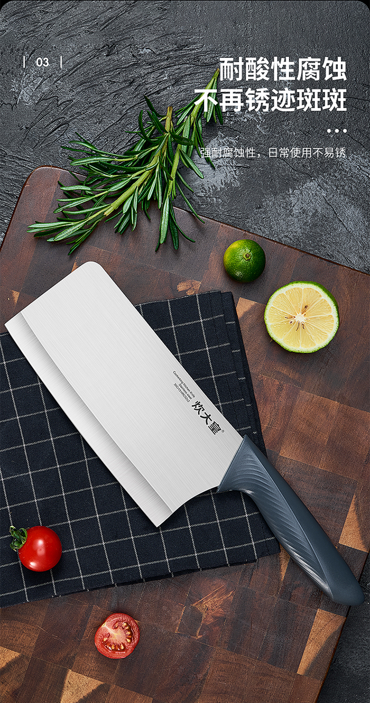 1、口薄背厚加倍锋利切配更省力,抛光刀面多次抛光平滑如镜,一冲即净不粘污渍清洗方便