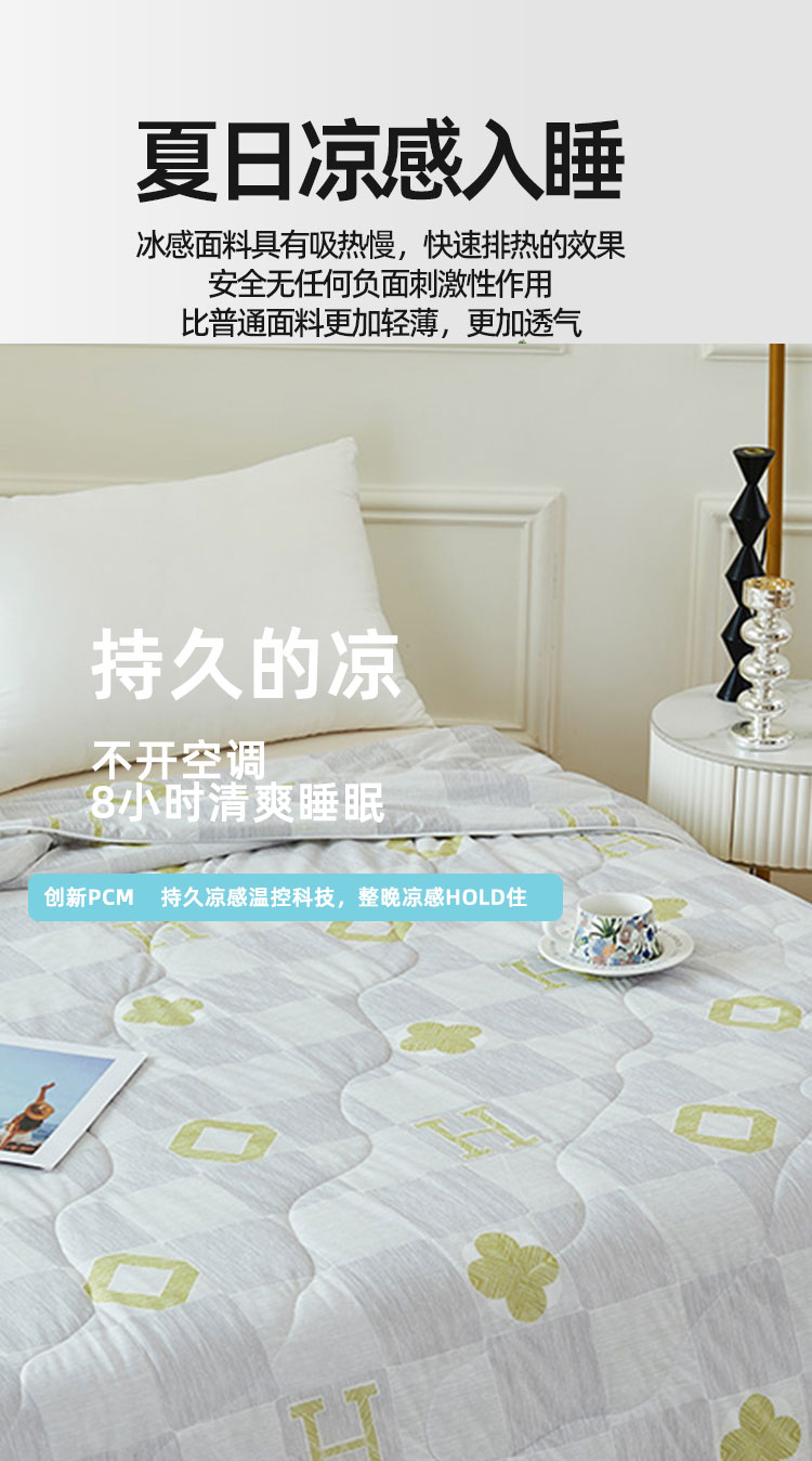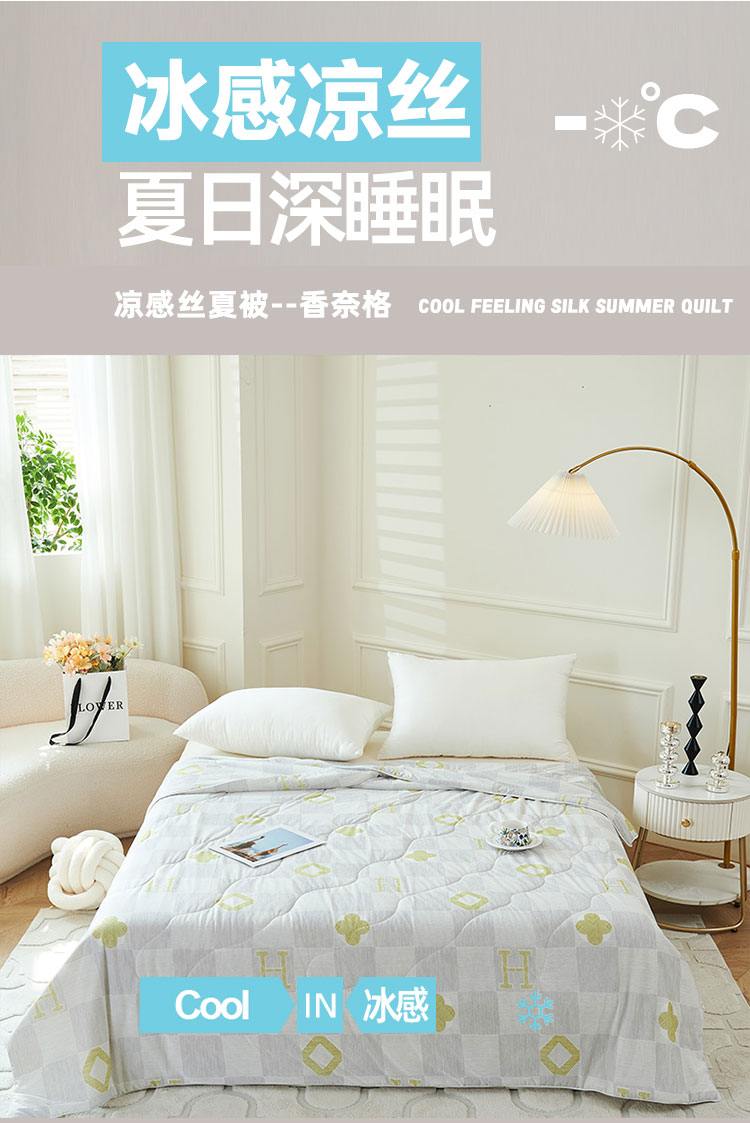 甄选面料,采用凉感丝高科技,触感冰凉,柔软亲肤,由内而外温柔包裹,舒适透气,告别夏日黏腻,遇见惬意睡眠