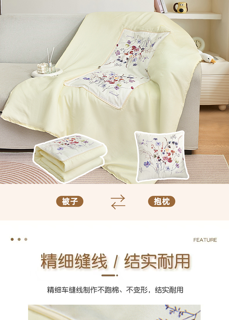 面料柔软亲肤,触感细腻如云朵,贴合身体时无压迫感,无论是靠坐放松,还是作为沙发装饰,都能带来“被温柔包裹”的舒适体验。清新雅致的花色适配多种家居风格(如北欧风、日式风、轻奢风等),为沙发、床头等空间增添视觉亮点,提升空间格调;靠坐时能有效支撑腰背,缓解久坐疲劳,兼具“装饰+功能”双重价值。抱枕可机洗(需遵循洗涤说明),日常清洁无压力,轻松保持整洁,让居家生活更省心。抱枕采用轻薄设计,折叠后体积小巧,便于收纳整理,不占空间,适配小户型或追求整洁的家居场景。"
