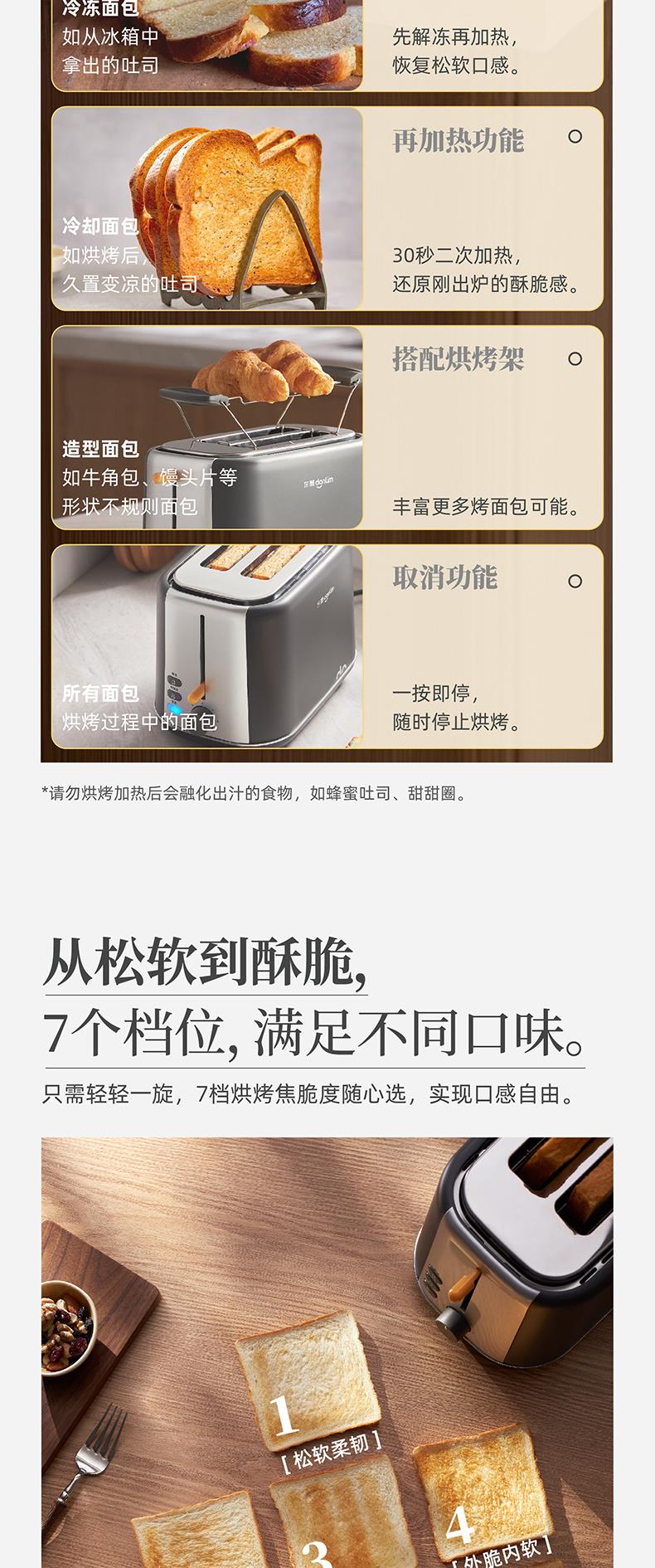 东菱多种模式灵活烘烤 多士炉 DL-1405钛金灰
