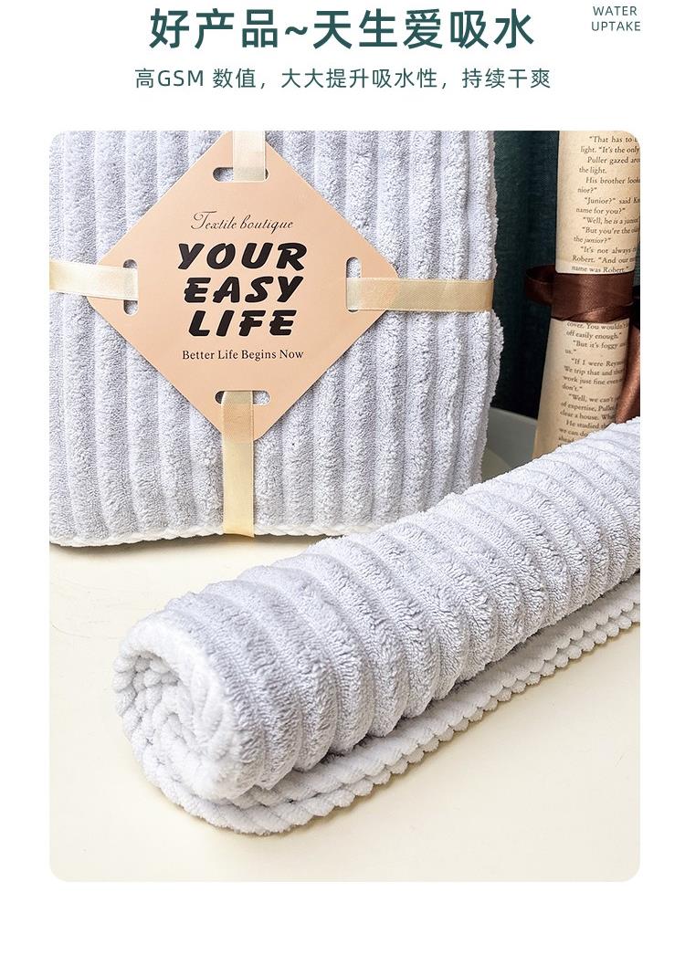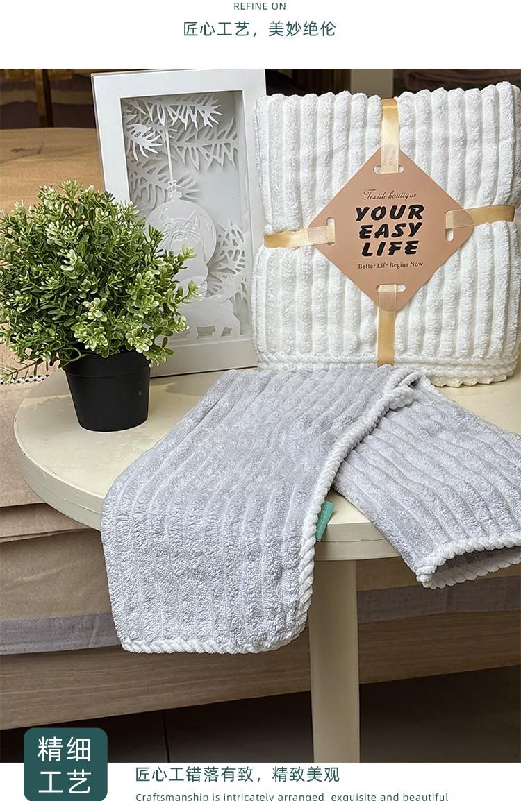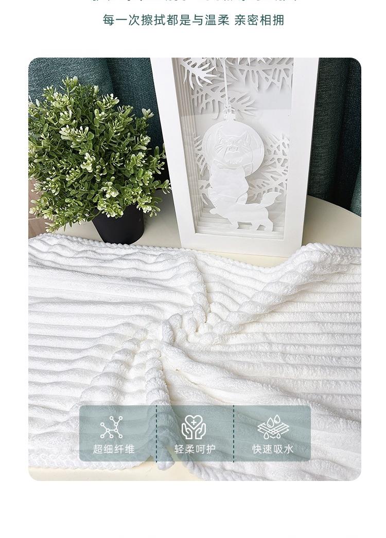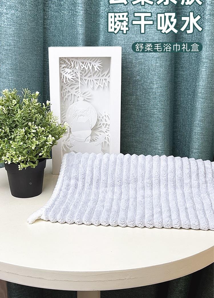 采用高品质的珊瑚绒面料,这种面料具有微细纤维结构,能够提供无与伦比的舒适感。它仿佛自然界的细腻触抚,与肌肤的亲密接触如同被温暖的云朵轻柔包裹。具有良好的透气性,能有效避免细菌滋生,长久维持毛巾的蓬松与清新,为您的健康生活保驾护航毛浴巾礼盒的设计注重细节,如边缘的精细锁边工艺,增强了产品的耐用度,有效防止脱线,体现了匠心独运