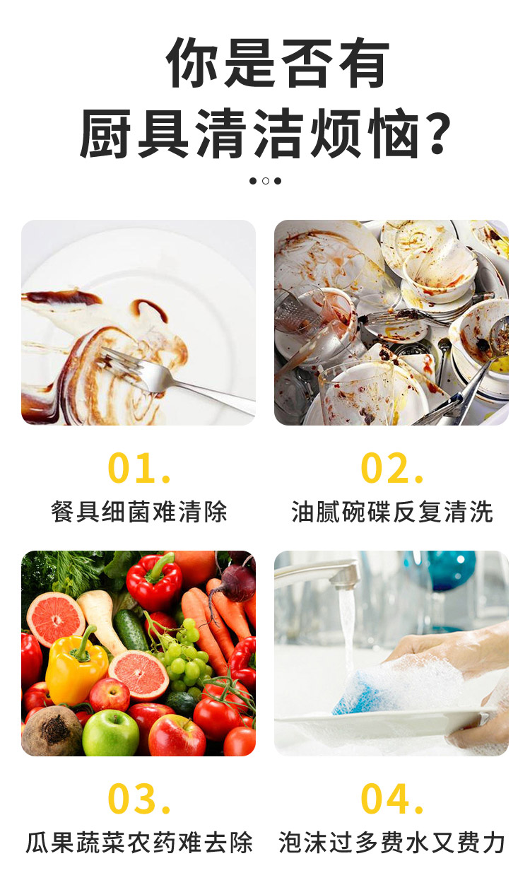 2.高效去污:快速乳化油渍,适合日常餐具及果蔬清洁;