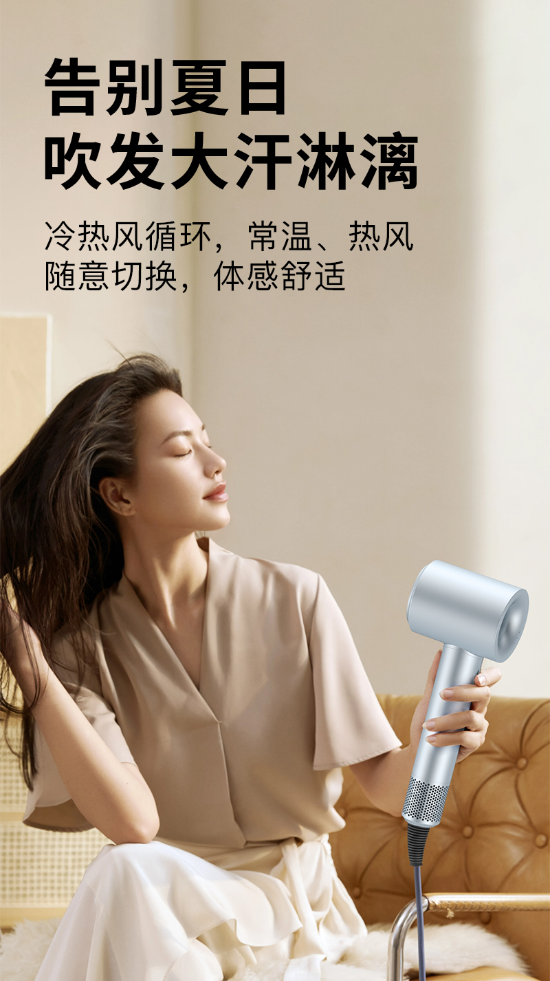 冷热风循环 常温 热风随意切换 体感舒适。告别夏荣吹风大汗淋漓。