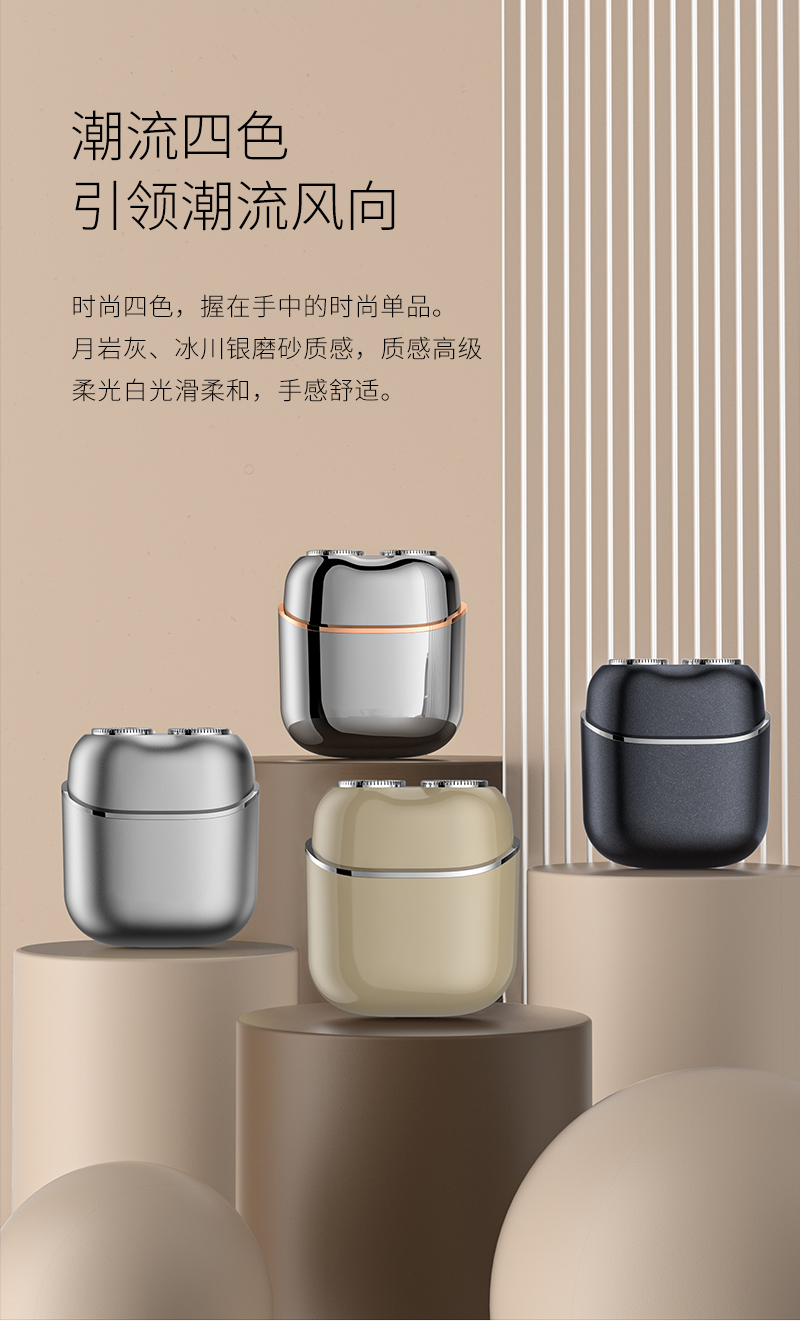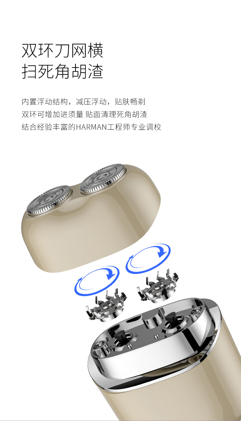 1. 双环弧面刀网,贴合面部舒适剃须;