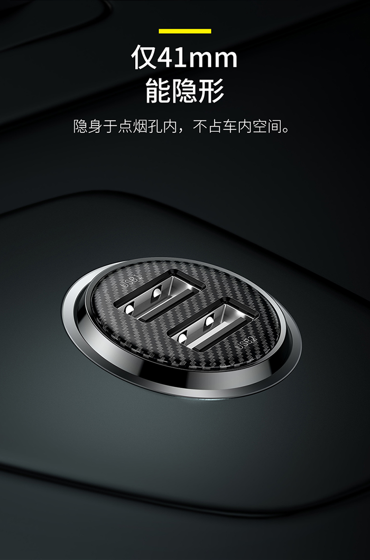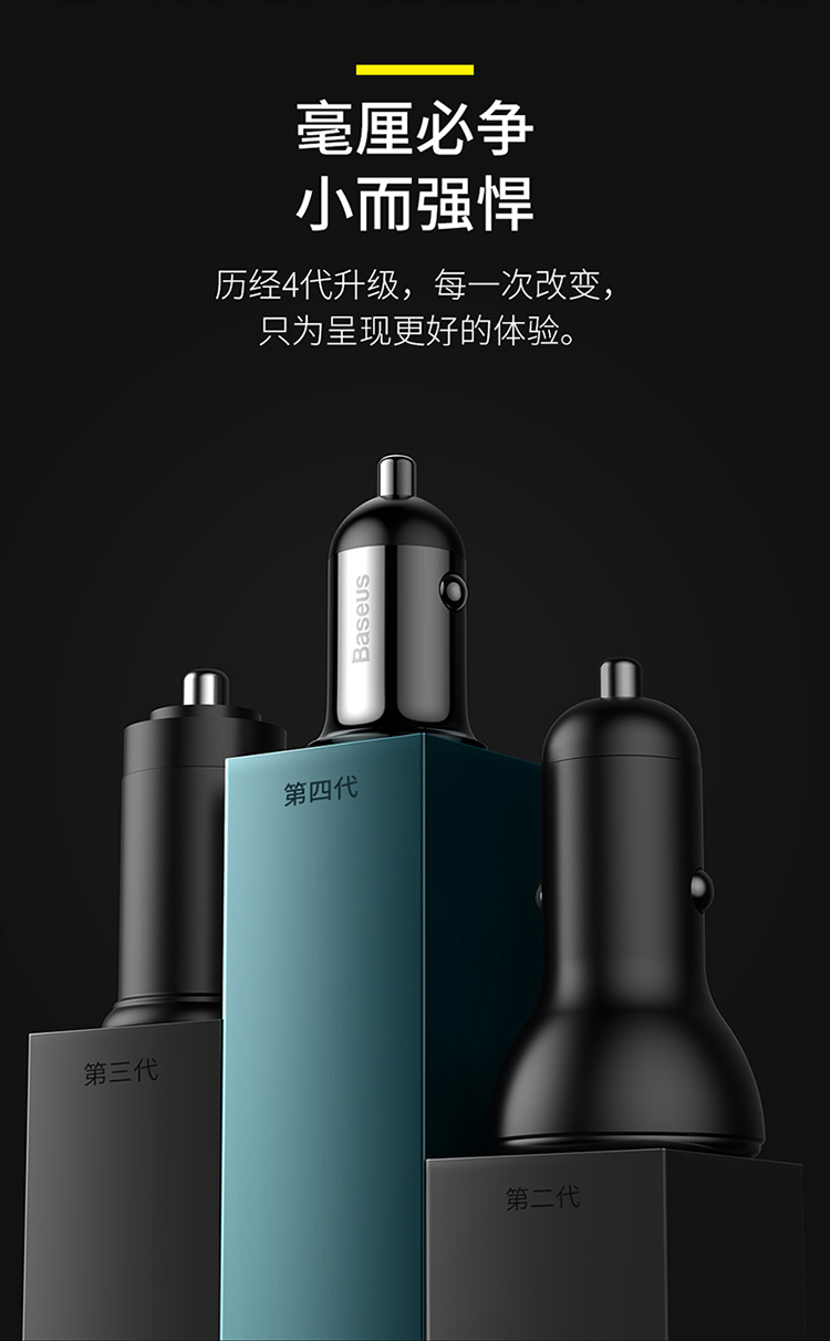 倍思小米粒Pro双U4.8A车载充电器黑色 CCALLP-01