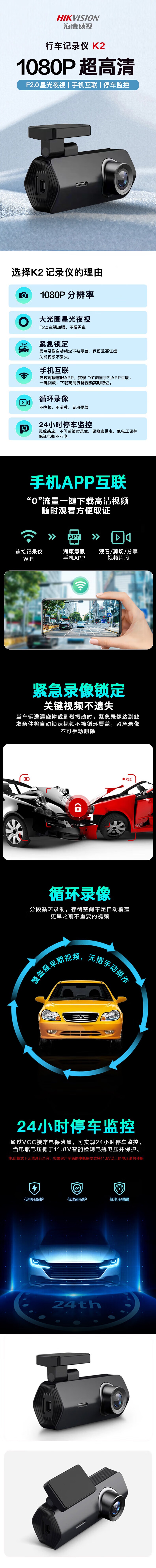 海康汽车电子 行车记录仪K2 1080P 30FPS WIFI手机互联 循环录像、自动覆盖