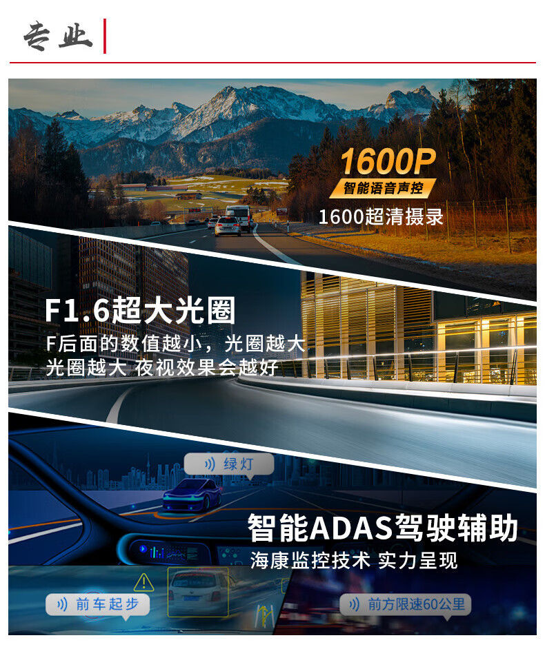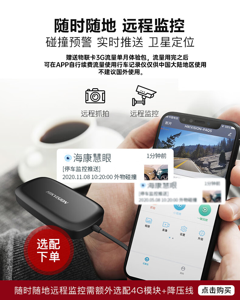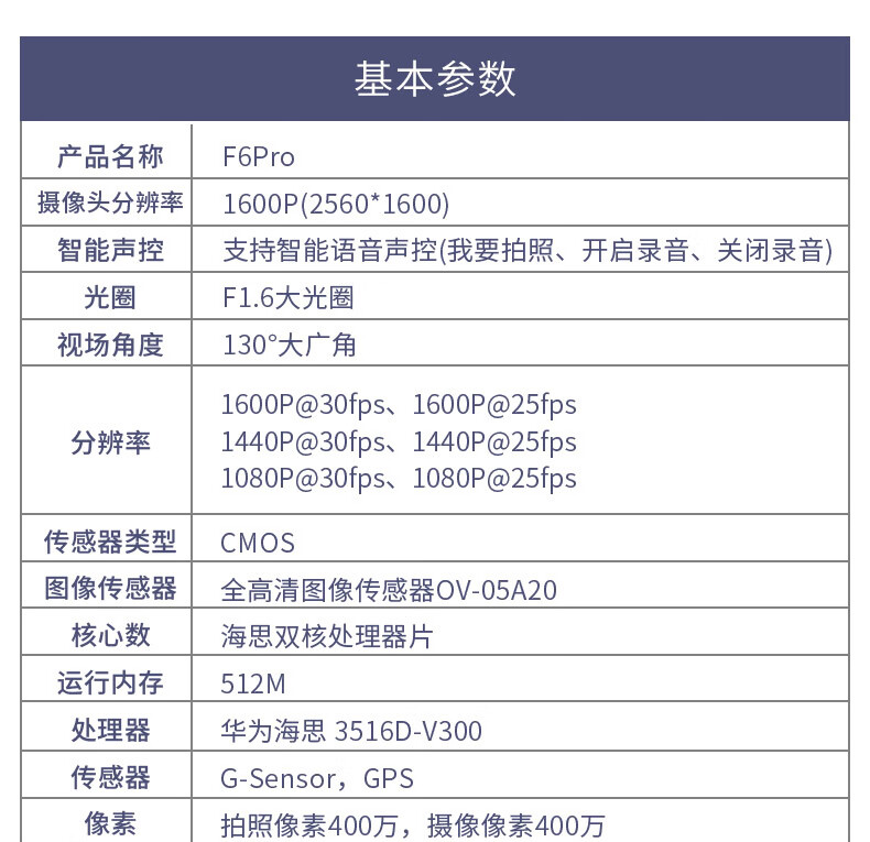 海康汽车电子 行车记录仪F6 PRO 1600P F1.6无光夜视 130°黄金广角 25FPS/30FPS