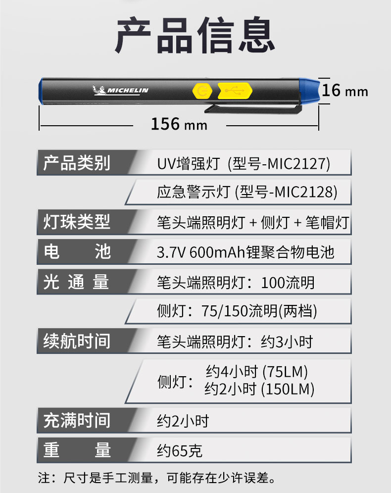 米其林笔形锂电池工作灯UC增强版(专业级)MIC2127