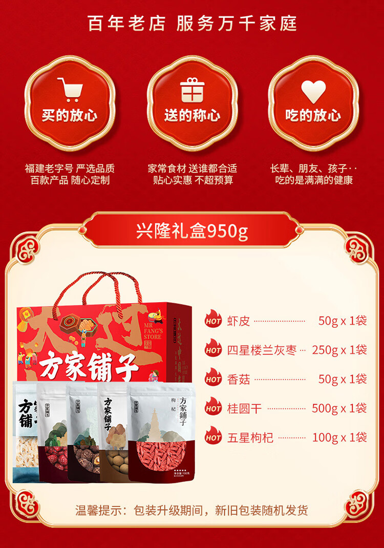 【方家铺子】兴隆菌菇干货节日礼盒950g/礼盒装