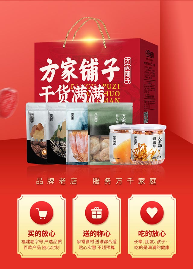 • 【方家铺子】海产菌菇礼盒贤礼952g/礼盒装