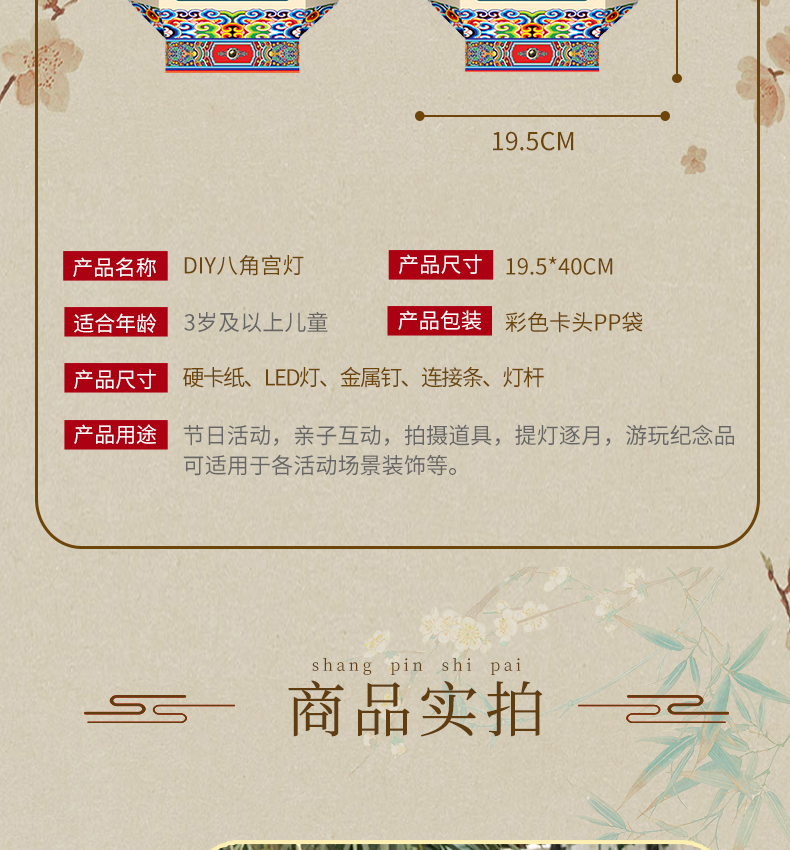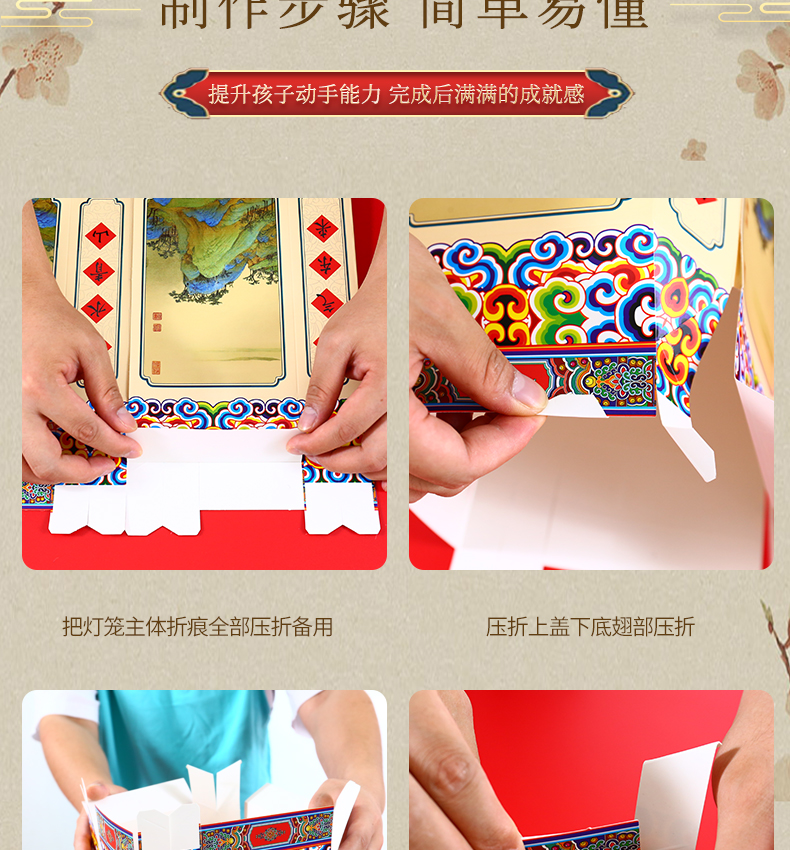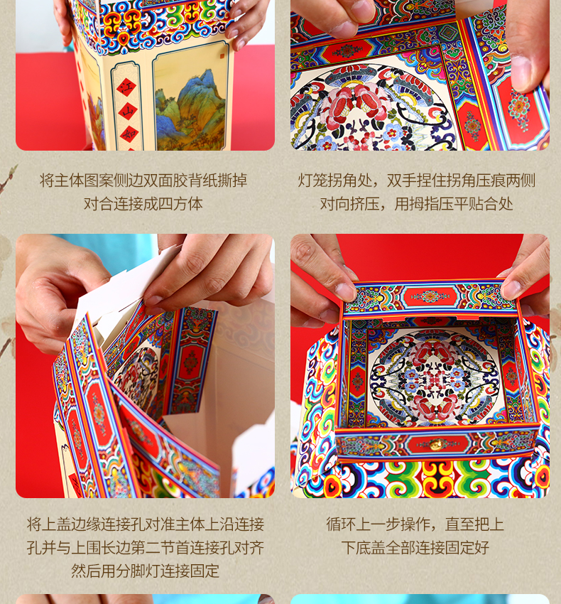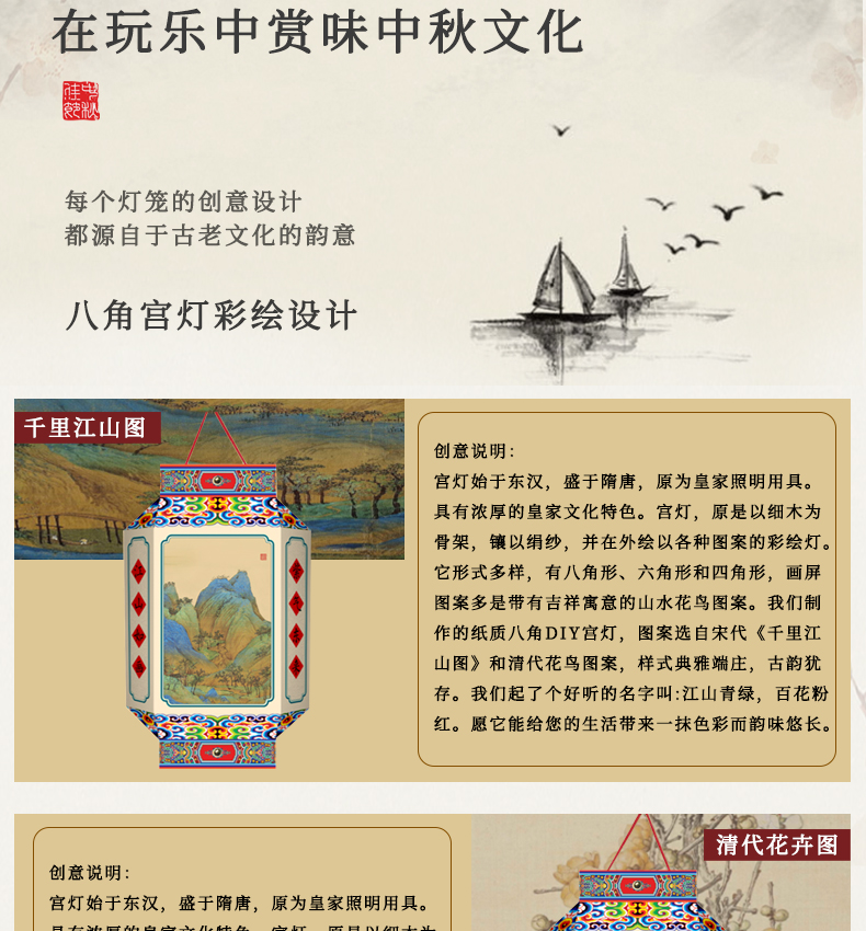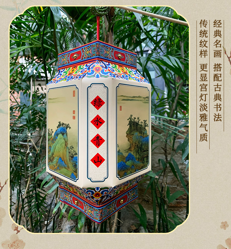 • 福人福地 DIY八角宫灯(礼盒对装)-(千里江山图+花卉图)DG.22.01.03h