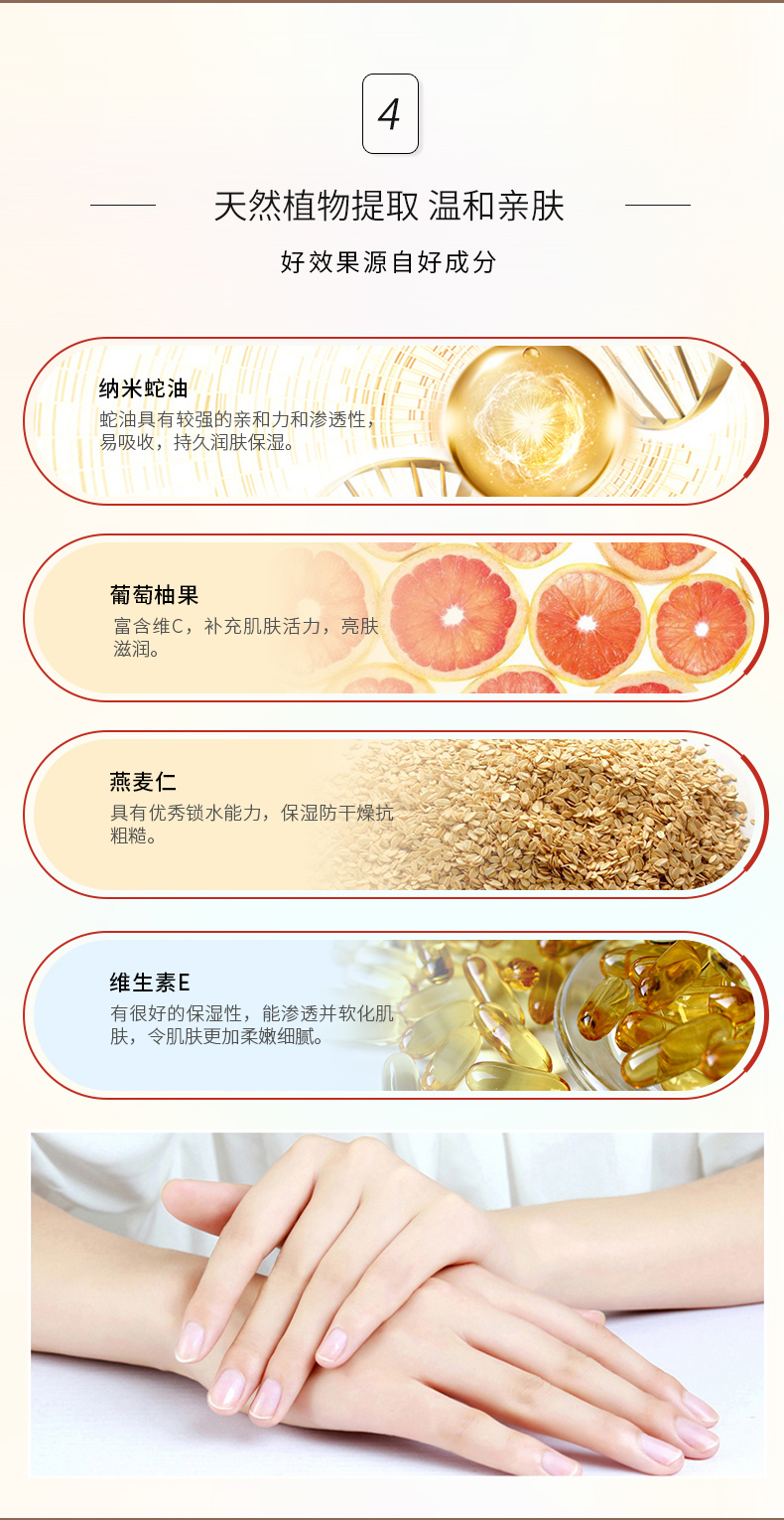 主要成分:蛇油、甘油、马脂、燕麦仁提取物