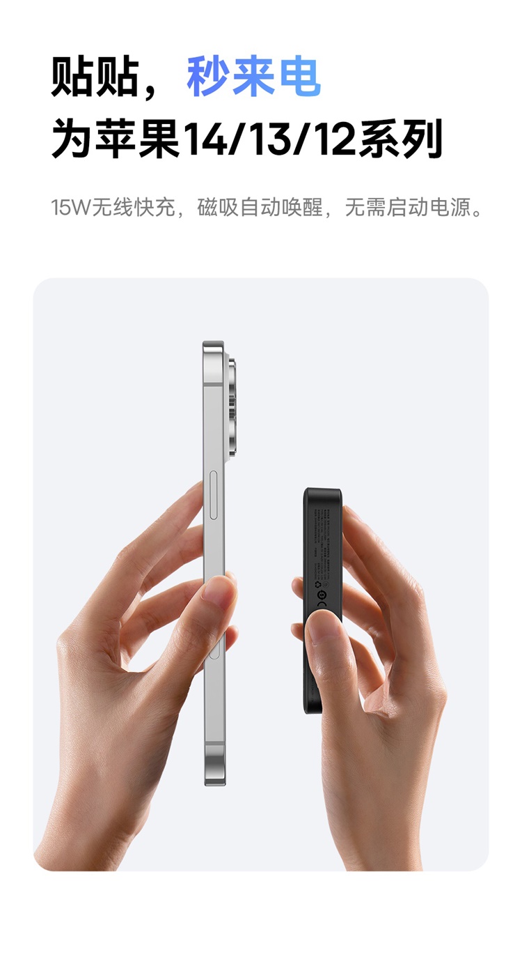 倍思MagPro磁吸支架无线快充移动电源5000mAh20W星际黑(含:简易数据线Type-CtoType-C(20V/3A)30cm白色)