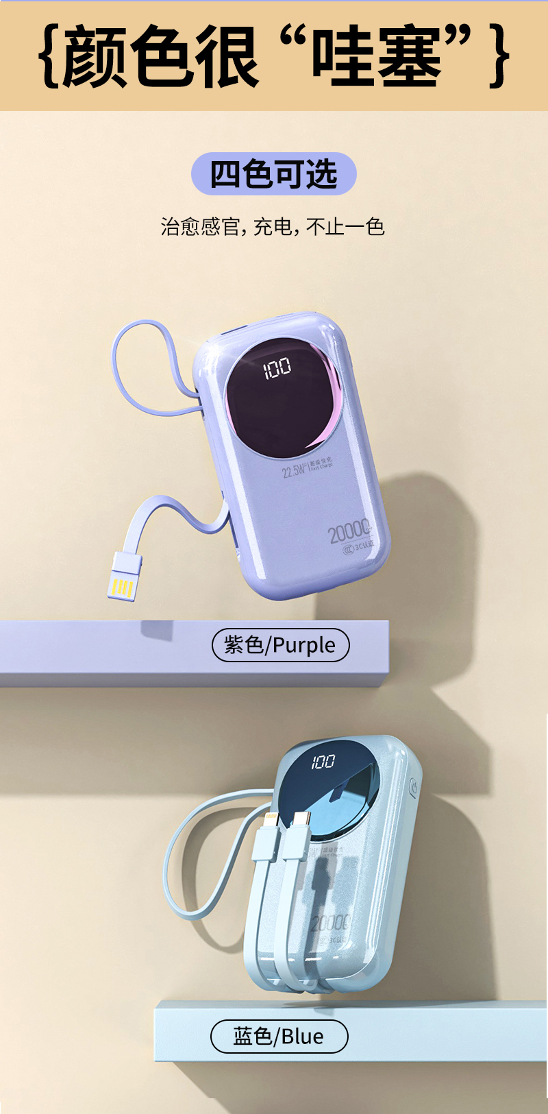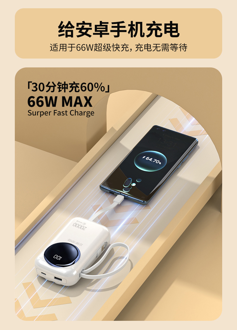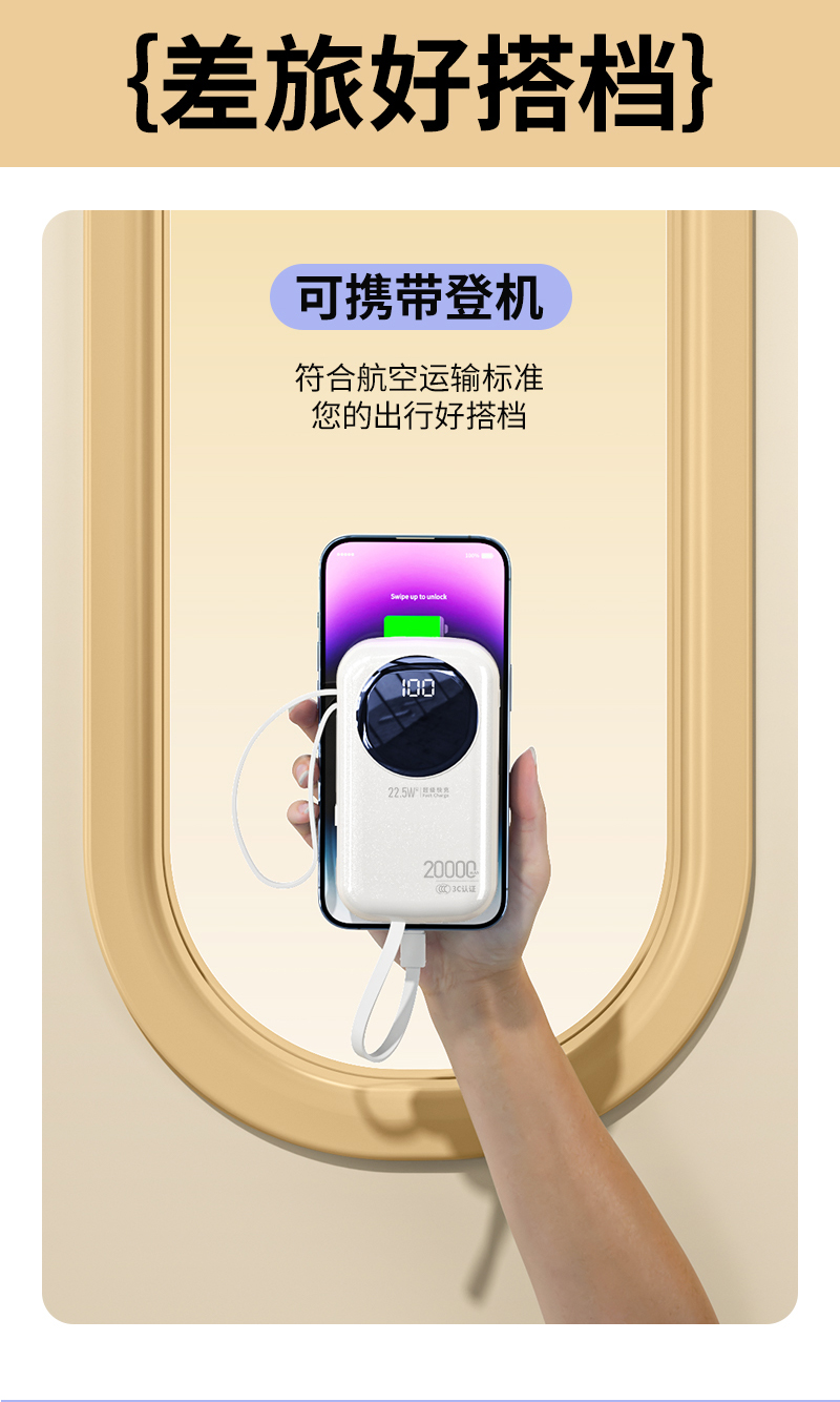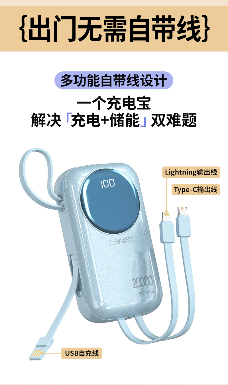 2. 出门无需自带线,1个充电宝解决「充电+储能」双难题;