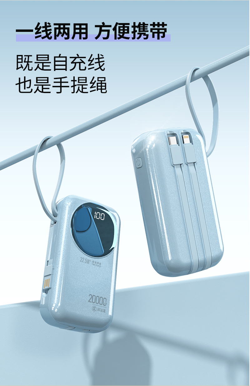4. 一线两用 方便携带,既是自充线也是手提绳;