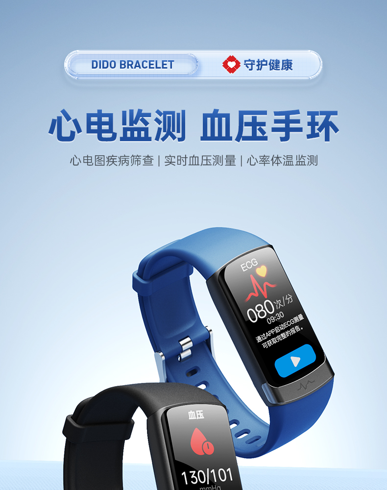 dido高精度血糖血压风险评估无创血氧手环智能免扎针24小时动态心率健康体温心电运动睡眠跑步测量仪老人F50S