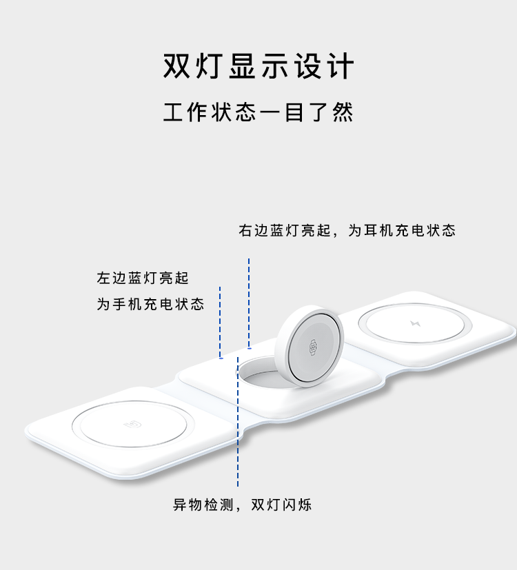 • RECCI锐思RCW-36无线充电器15W三合一可折叠便携携带可冲耳机手表手机