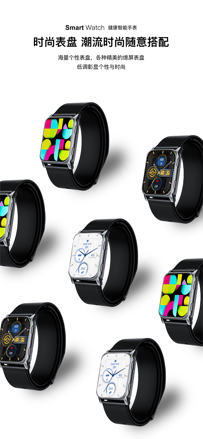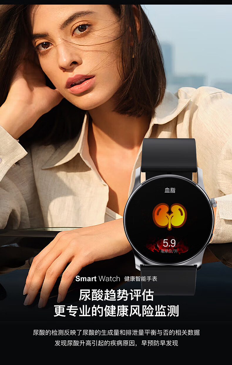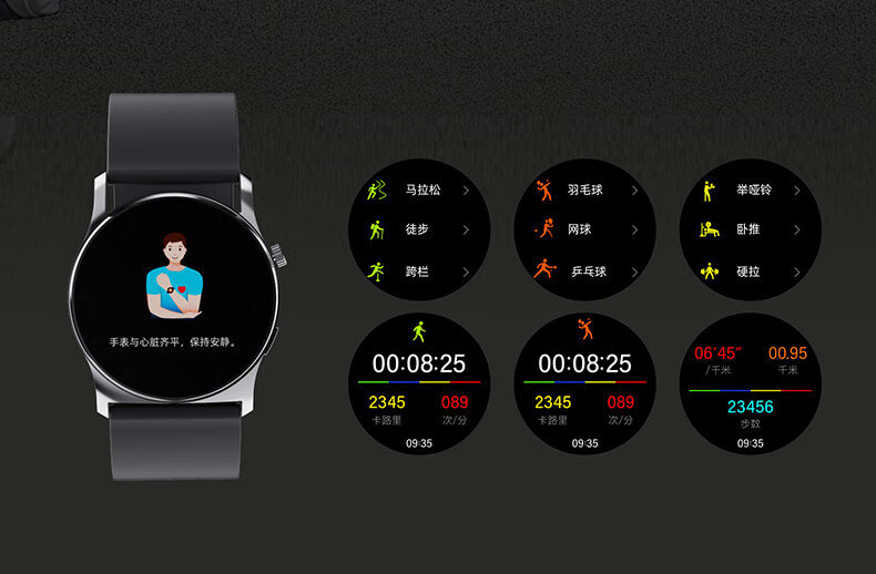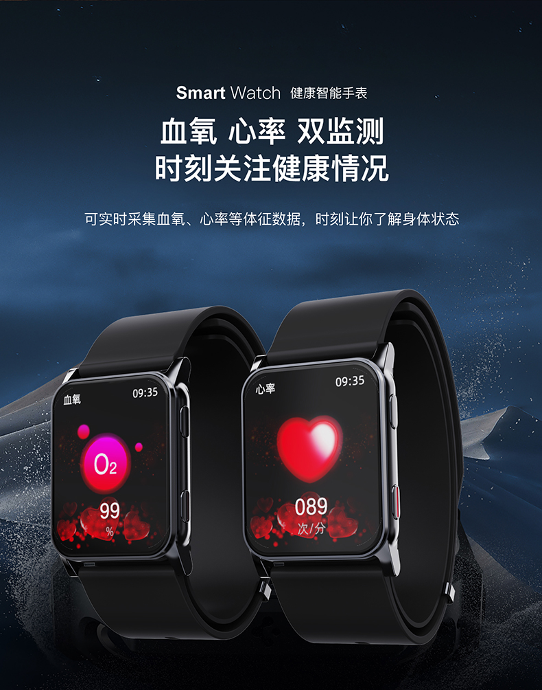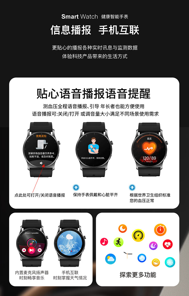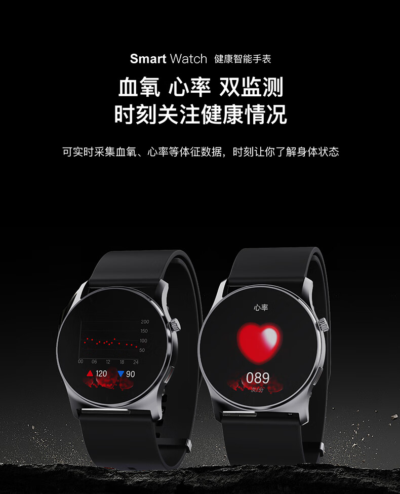 1,内置气泵与气囊,精准血压,血氧,心率,睡眠质量等测量。