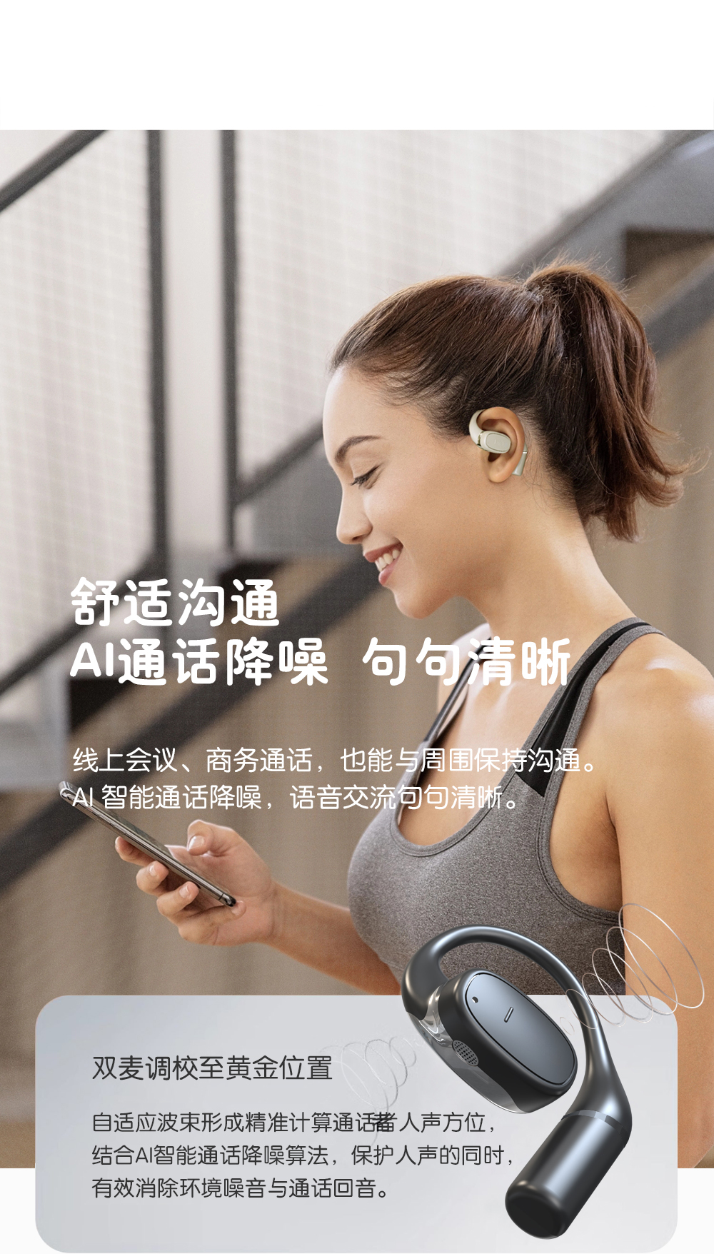 2,全天候轻盈舒适,久戴不累耳,兼顾音乐与环境音,佩戴更安全