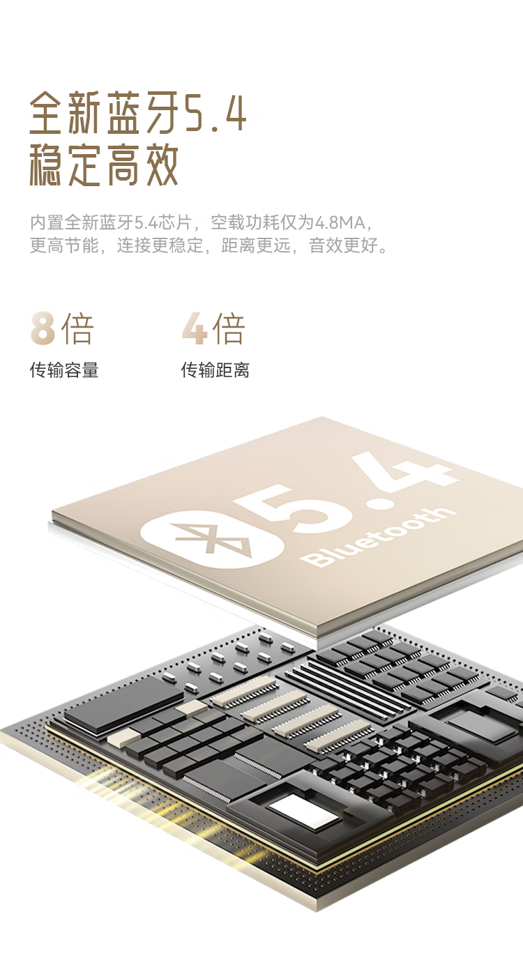 3,蓝牙5.4芯片,功耗低、不延迟、不卡顿