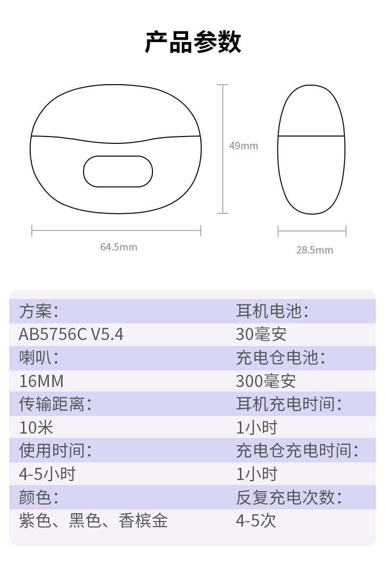 4, 夹耳式设计,小巧轻盈护耳,轻盈不压耳