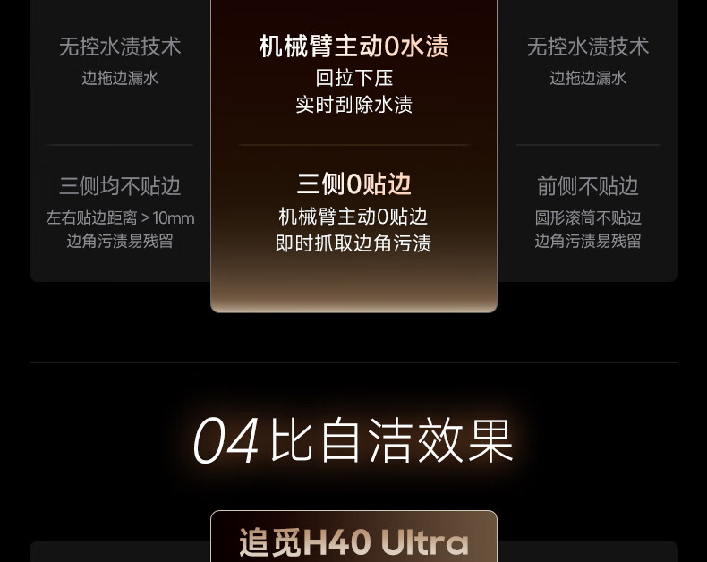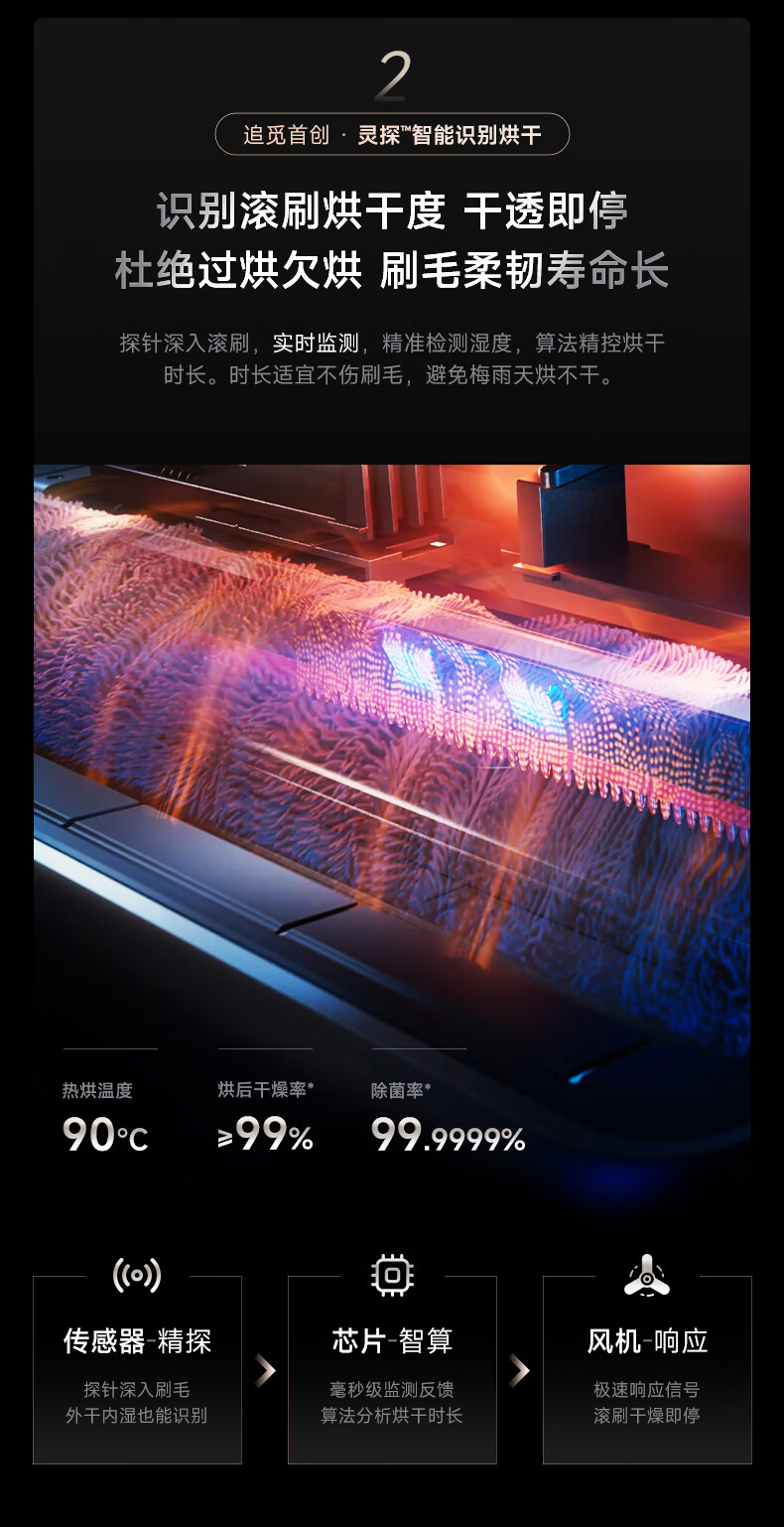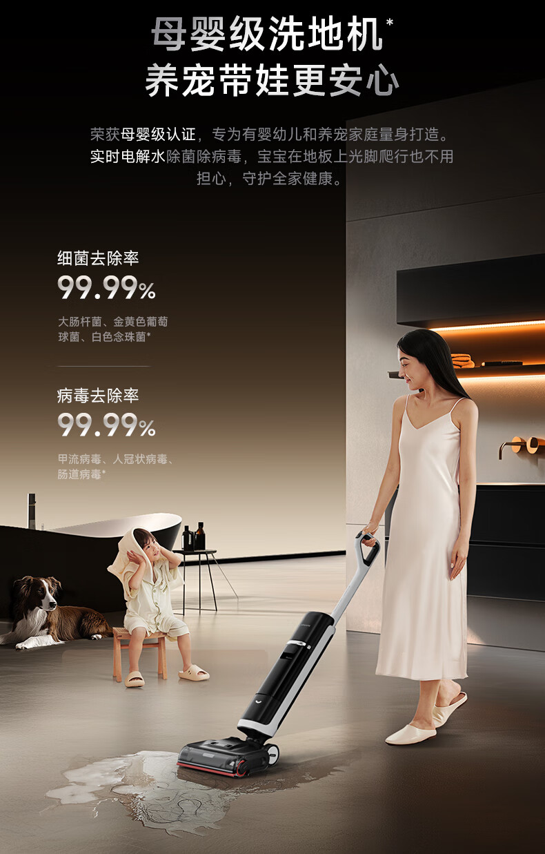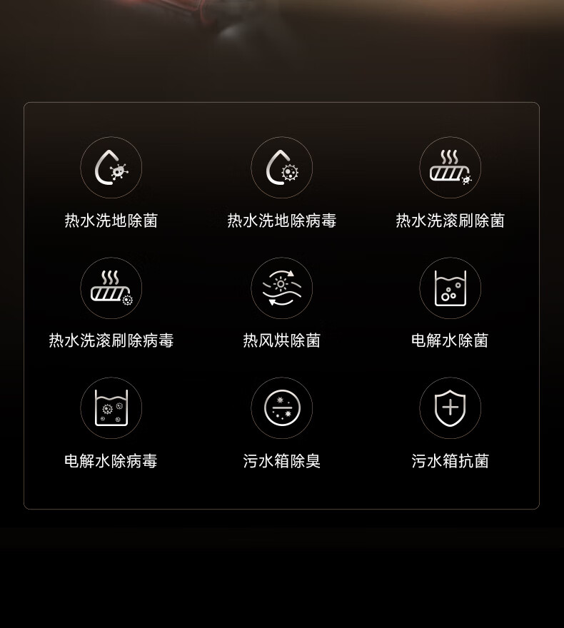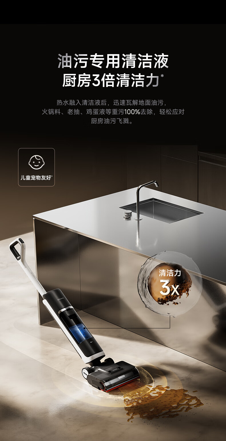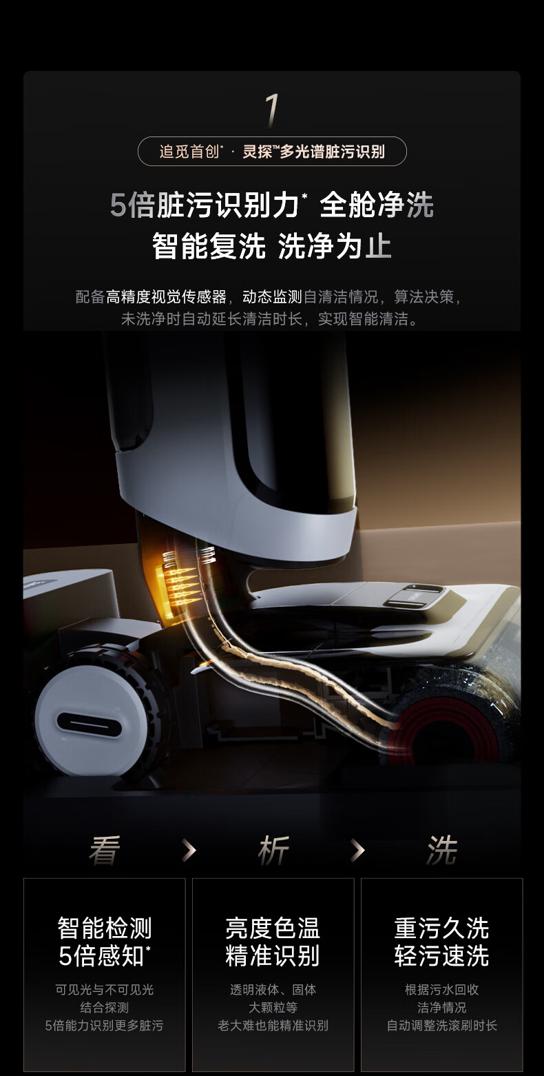 0缠毛、0水渍、平躺、100%全舱洗、100%除油污、21000Pa天花板吸力