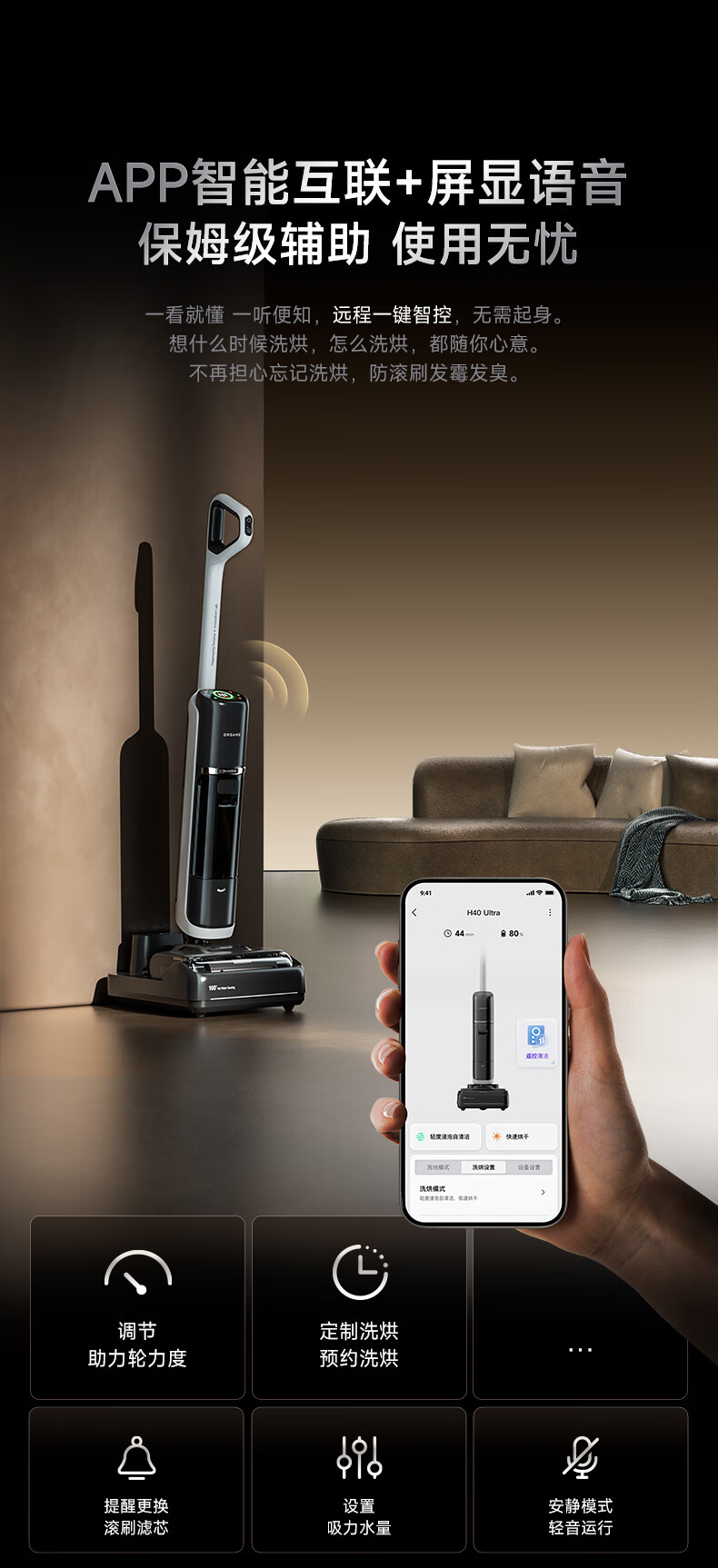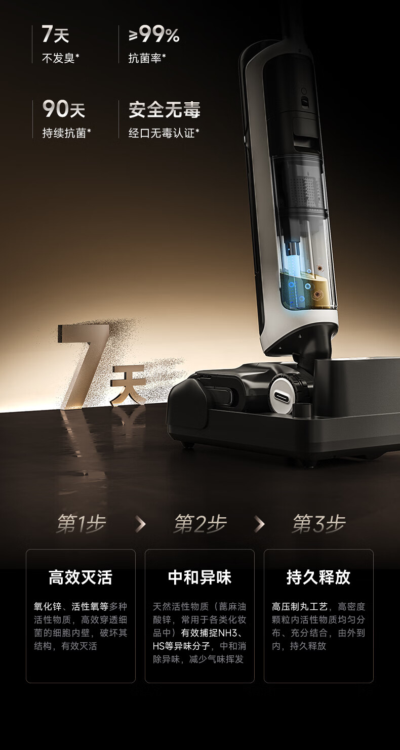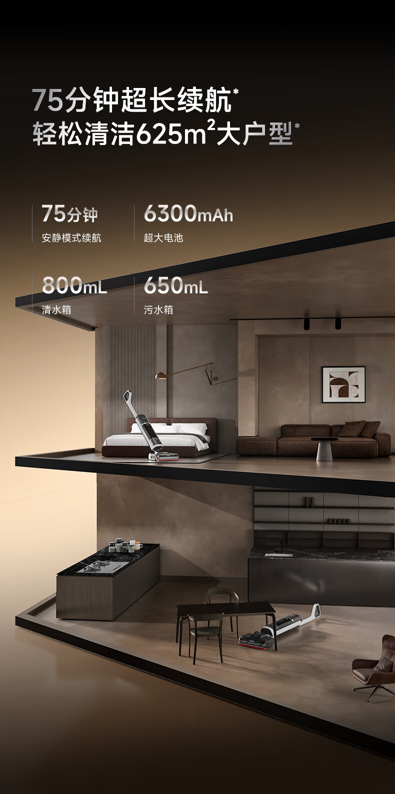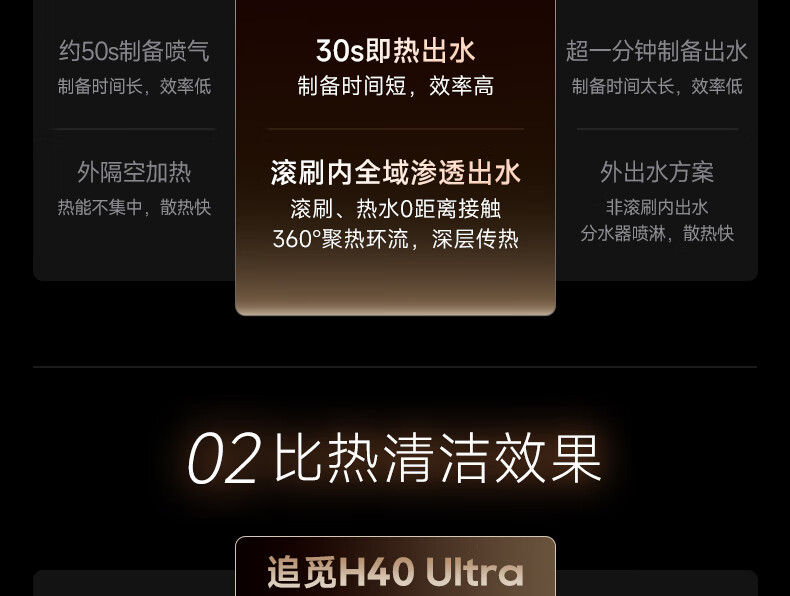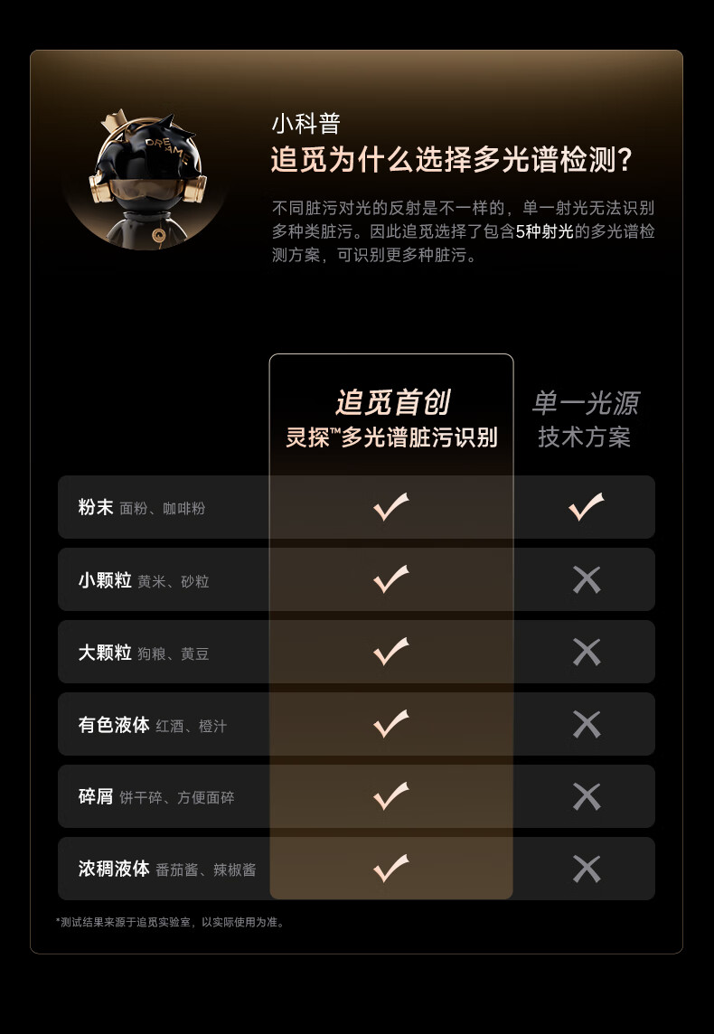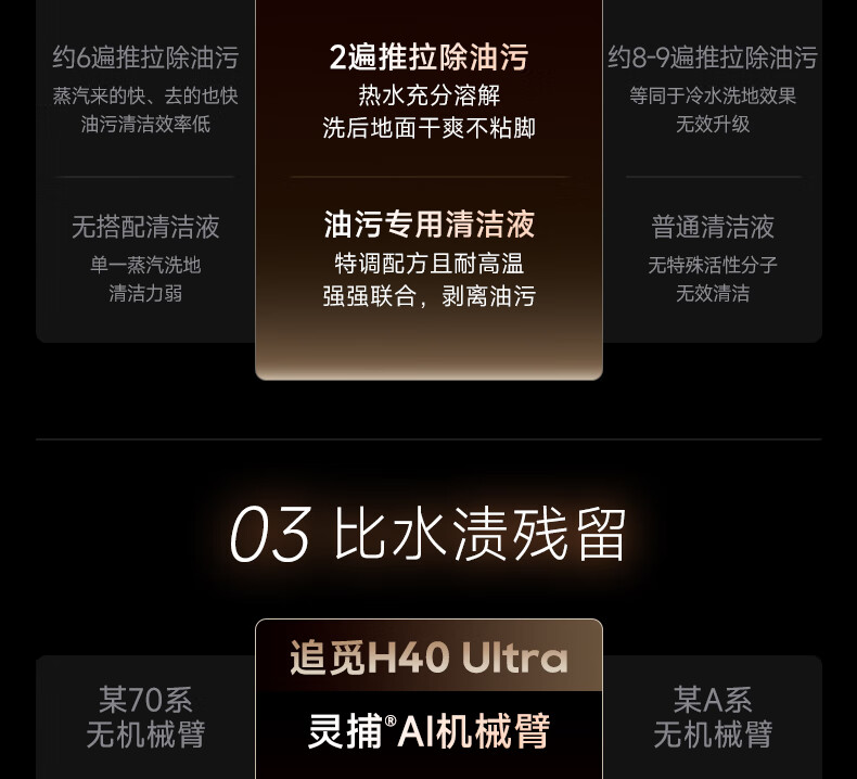 0缠毛、0水渍、平躺、100%全舱洗、100%除油污、21000Pa天花板吸力