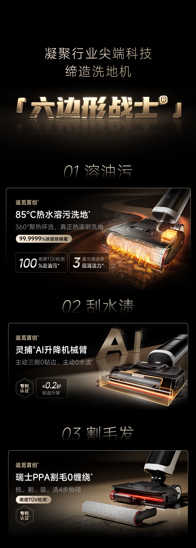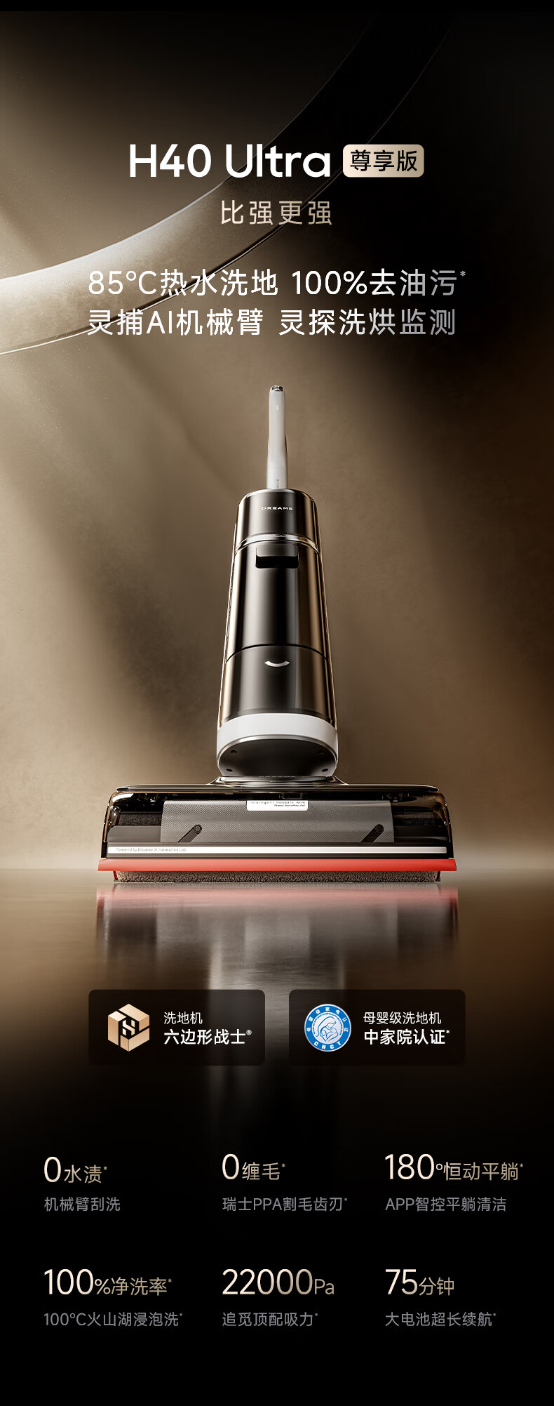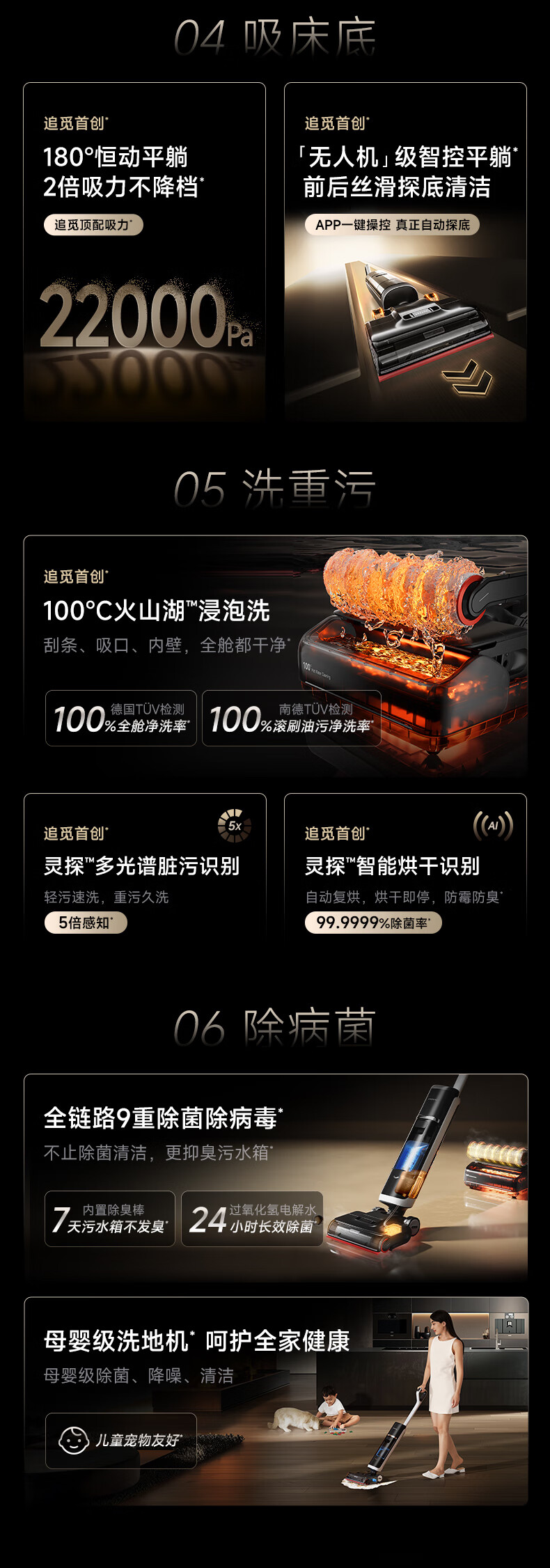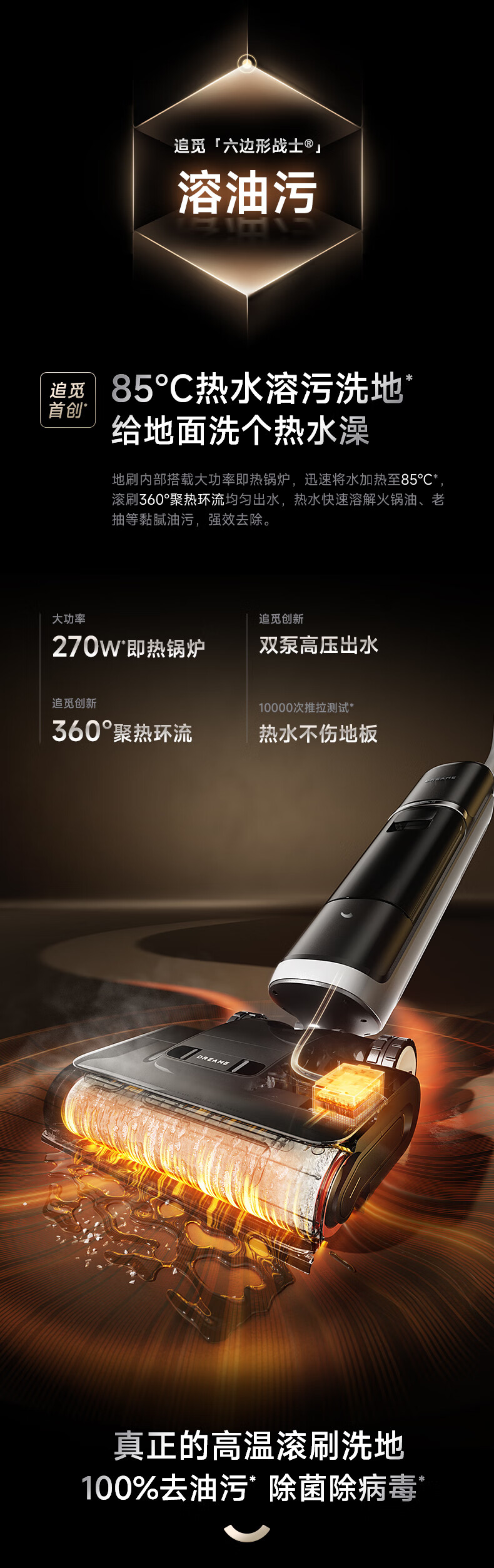 22Kpa、85°高温热水洗地、100%去油污、灵捕AI机械臂、浸泡洗