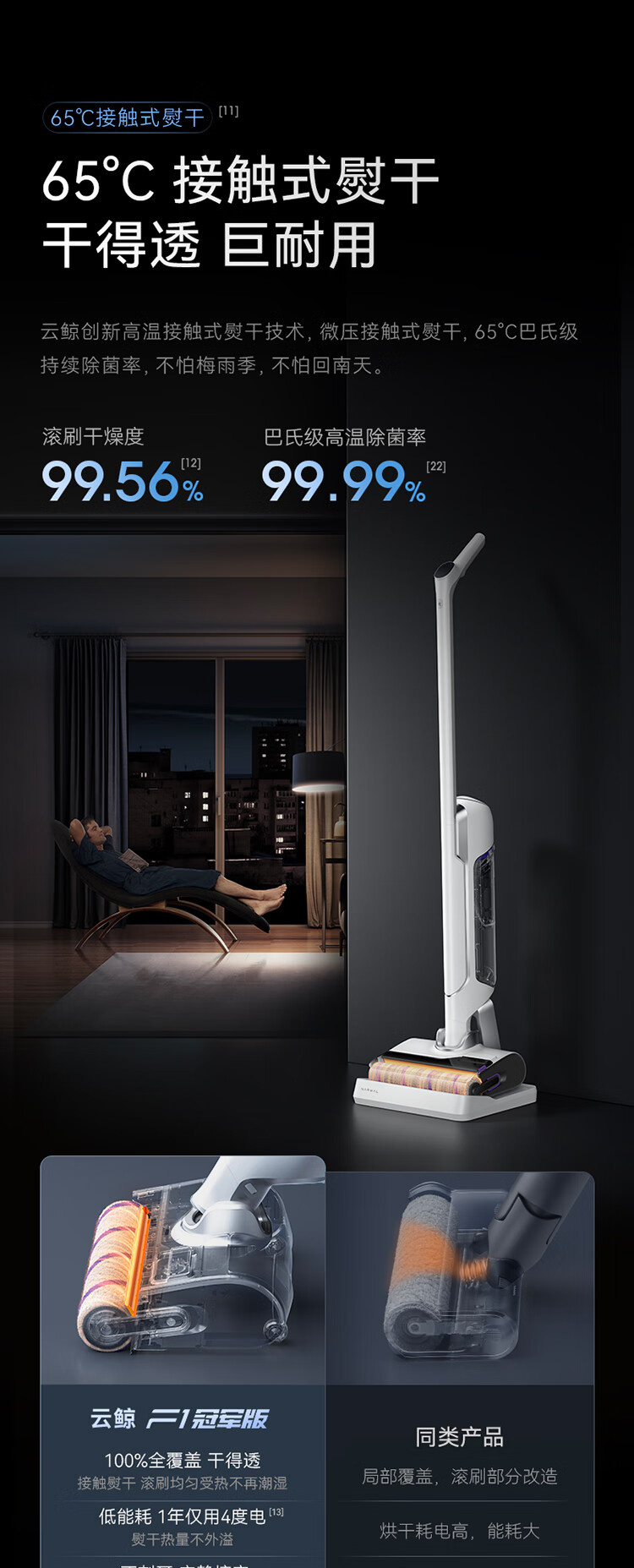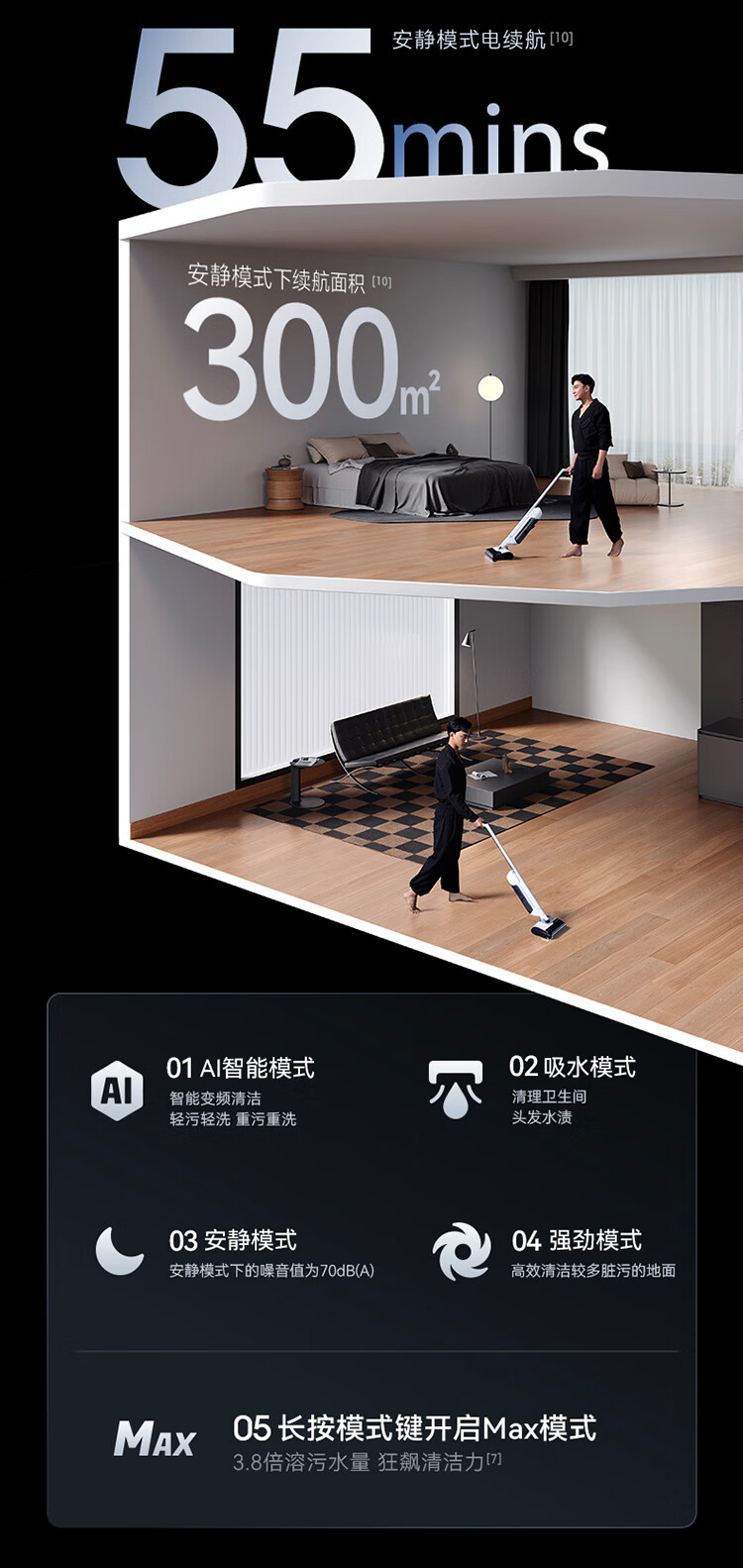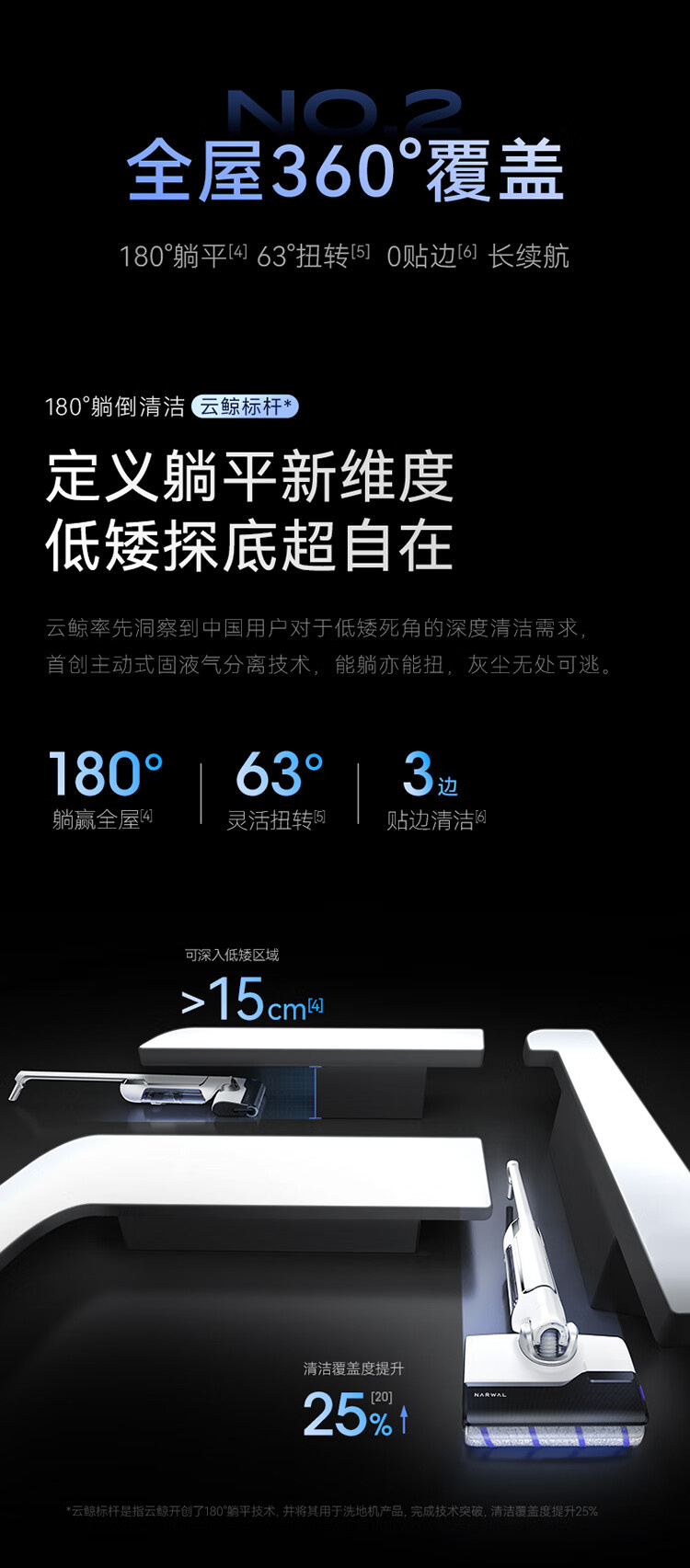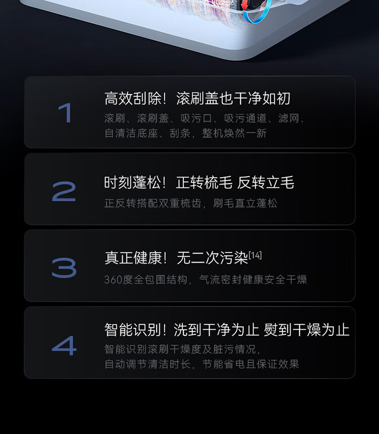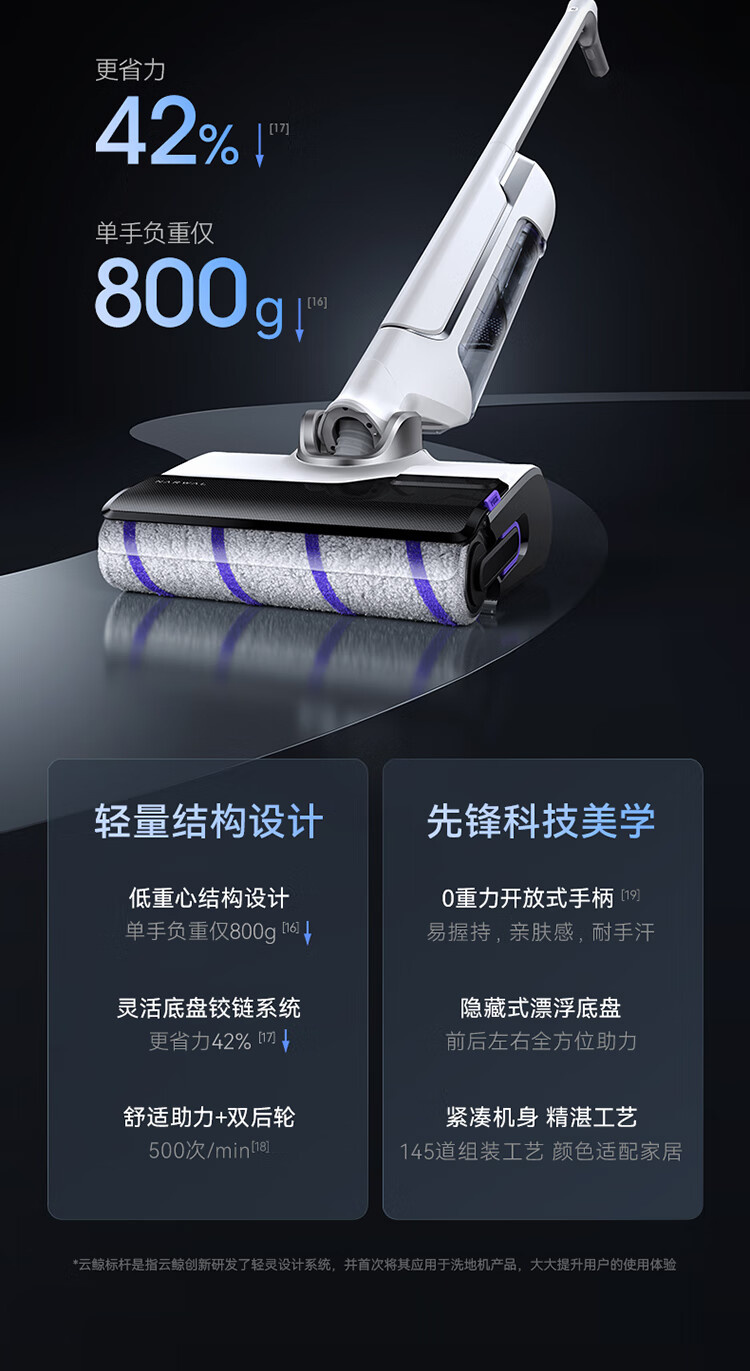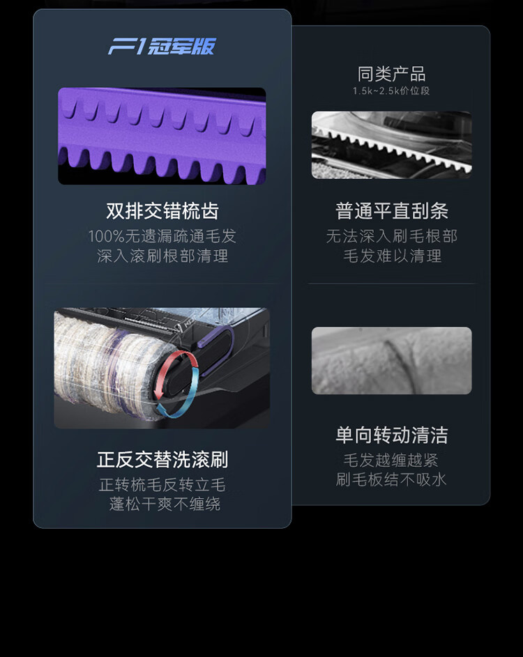 18000Pa大吸力、180°躺平、防缠绕、三贴边、银离子除菌、续航55min、前后左右全方位助力、高温熨干