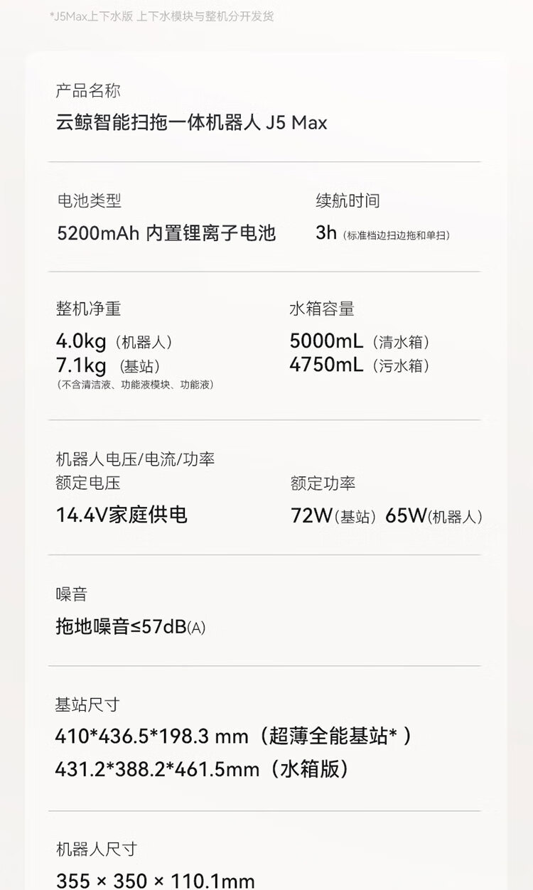 云鲸(NARWAL)扫地机器人J5MAX