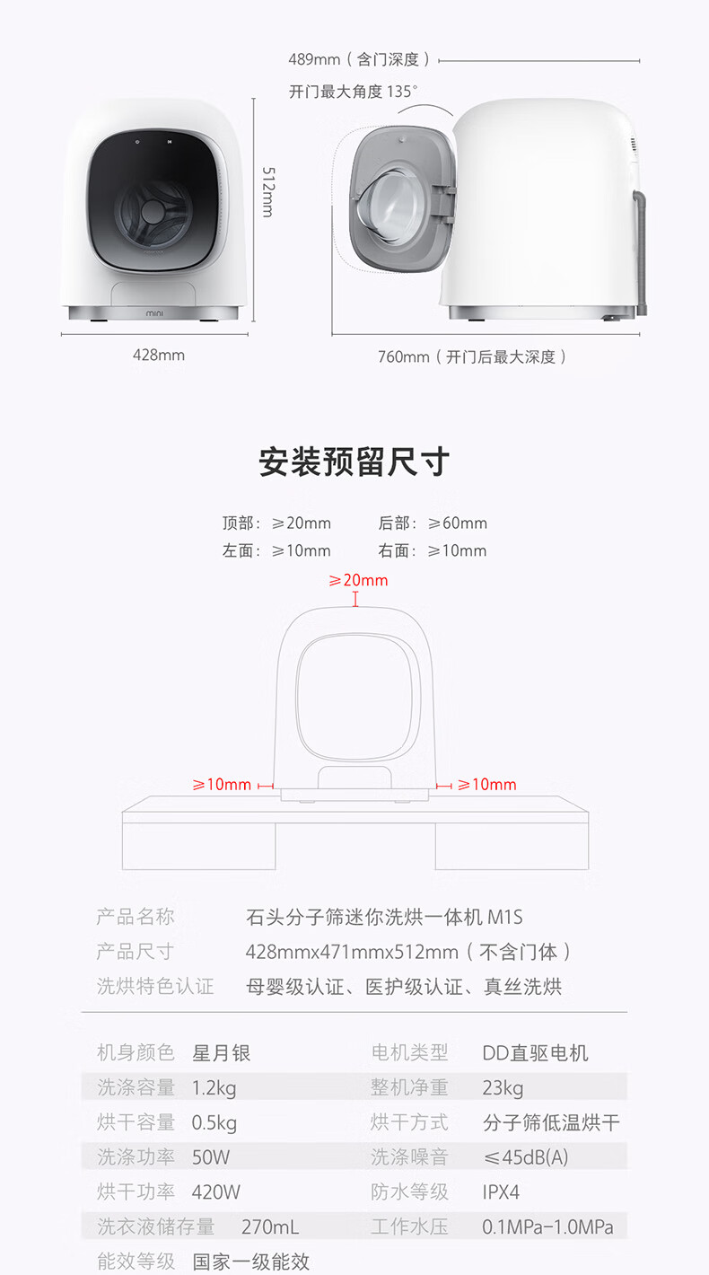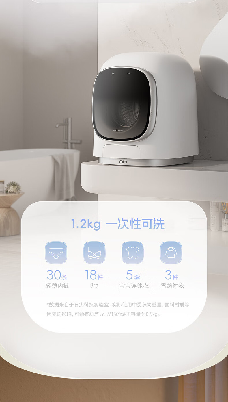 石头(Roborock)迷你洗衣机洗烘一体M1S(银色)